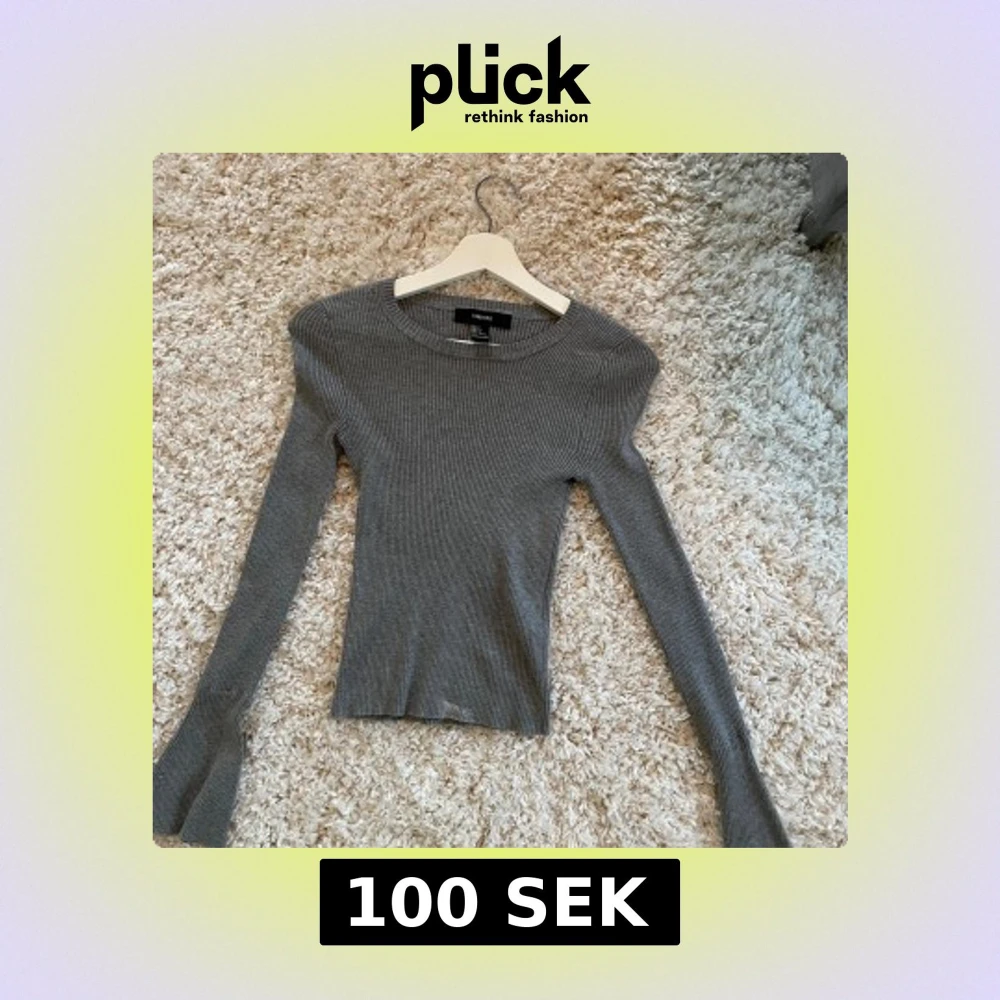 Säljer en stilren grå ribbad tröja från Forever 21. Tröjan har en tight passform och långa vida ärmar.