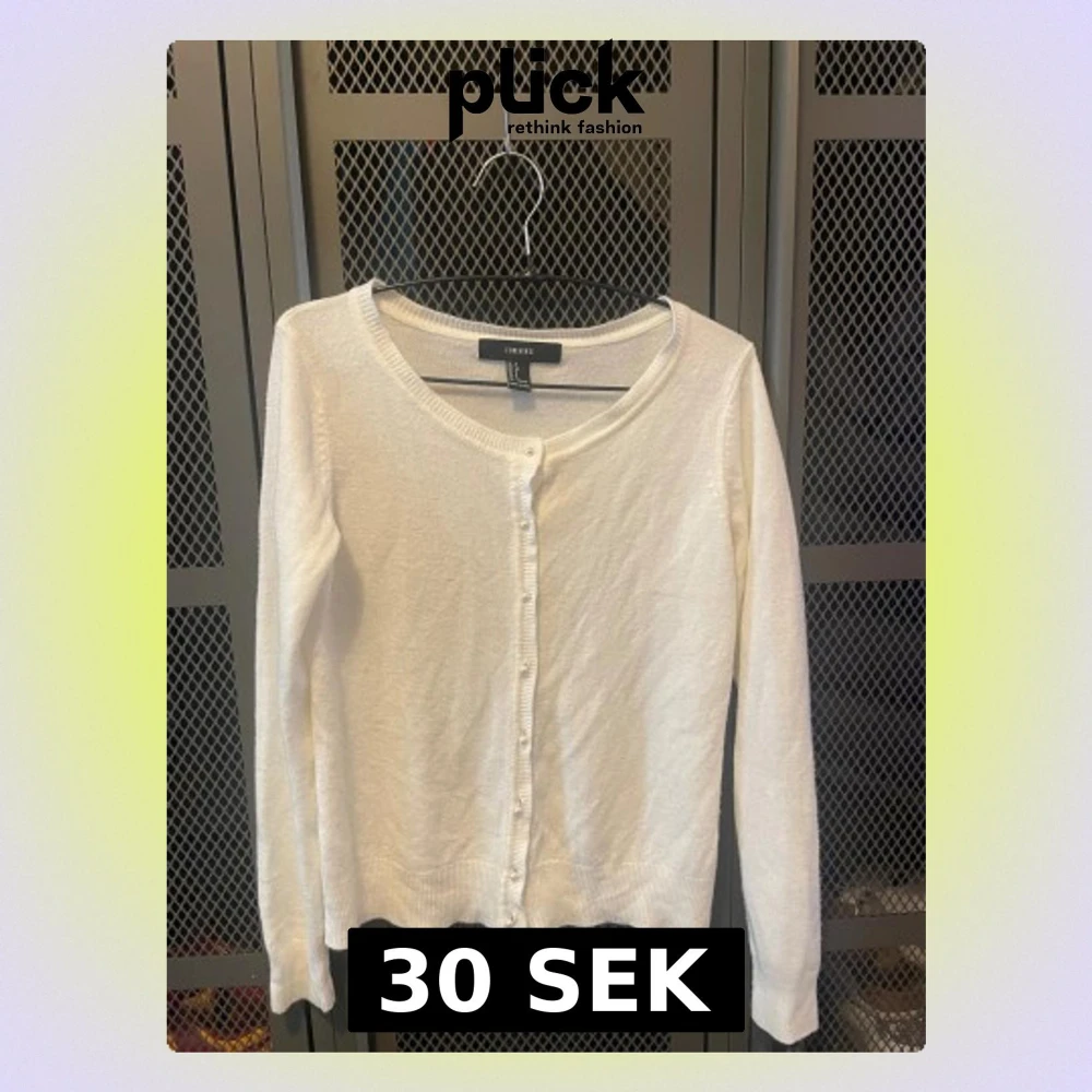 Supersöt vit kofta från Forever 21 i storlek S. Den har rund halsringning, långa ärmar och pärlknappar framtill. Materialet är mjukt och tunt, perfekt för lager på lager under vår och höst. Enkel och clean stil som funkar till många outfits.