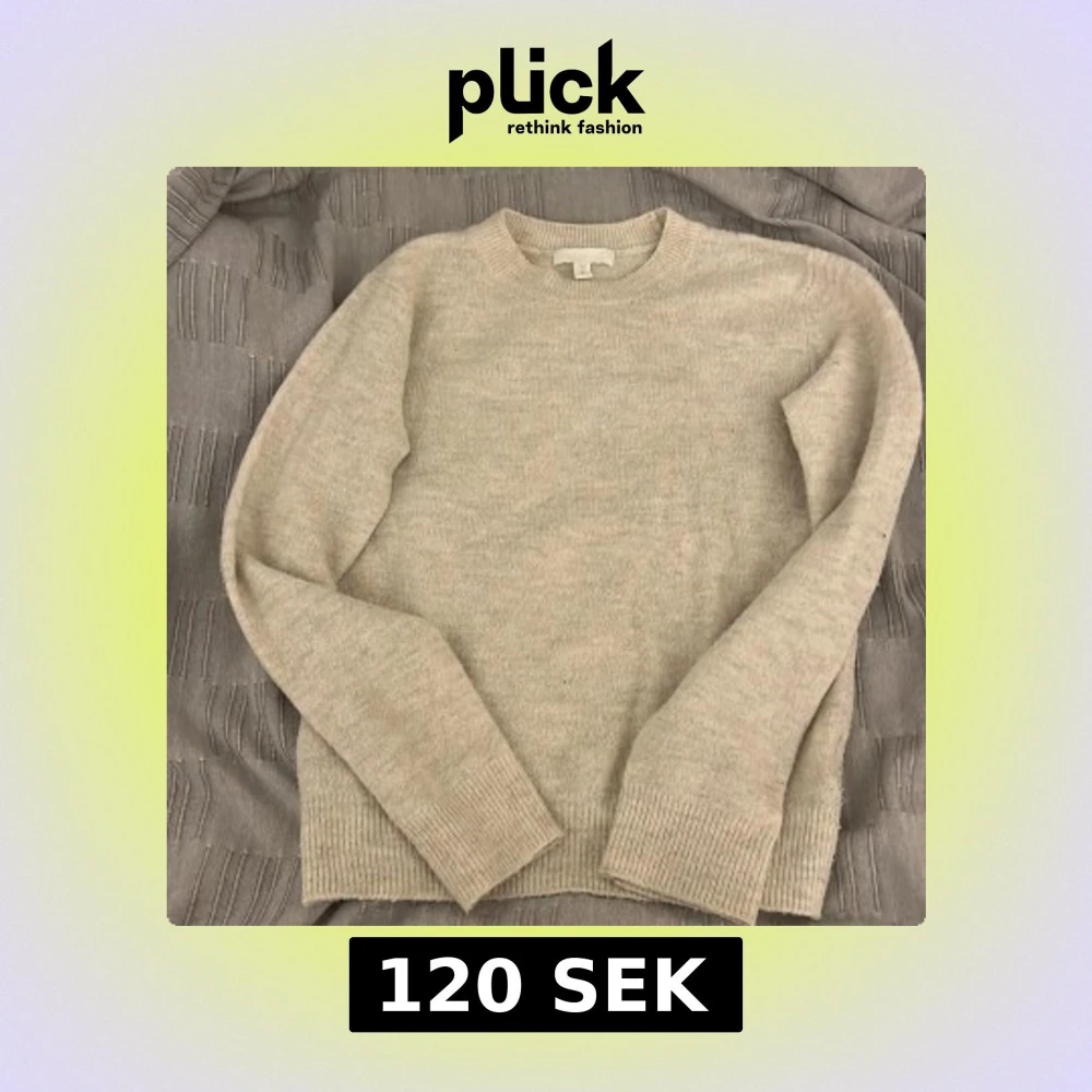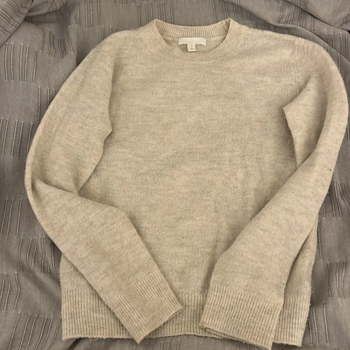 Mysig beige stickad tröja med rund hals och långa ärmar. Perfekt för kyliga dagar och enkel att matcha med olika outfits.
