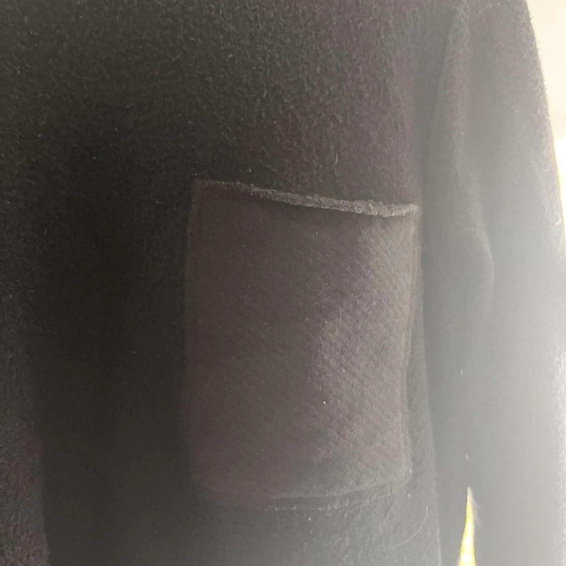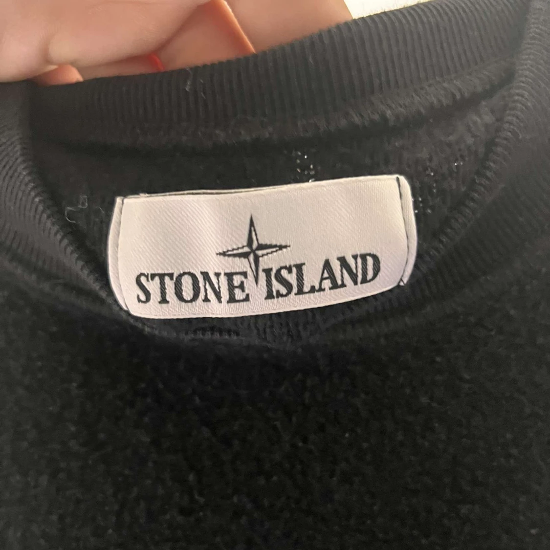 Svart stickad tröja från Stone Island med klassisk patch på ärmen och en bröstficka. Tröjan har rund halsringning och långa ärmar, perfekt för dig som gillar stilren streetwear med premiumkänsla.