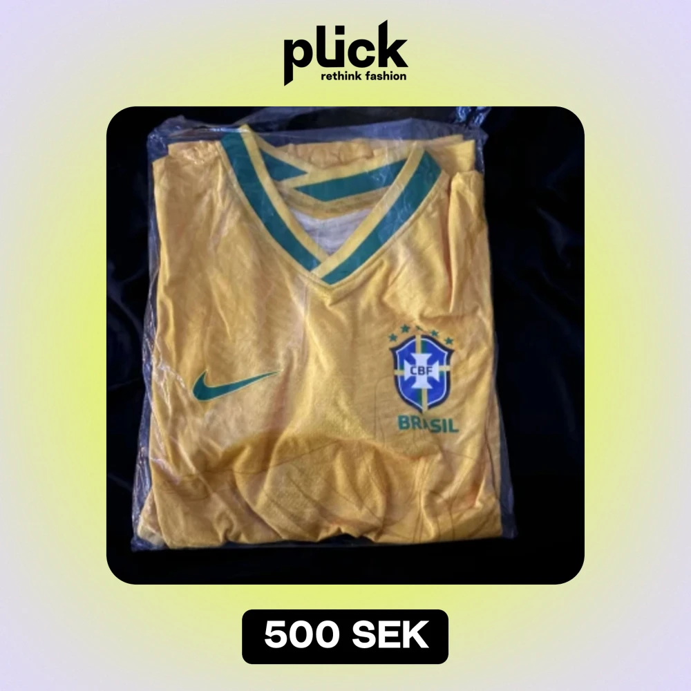 Custom Brasilien Shirt. Helt ny Brasilien fotbollströja med Nike logga. Skrynklig på bilden då den precis kommit från förpackningen, men vid strykning ska den bli slät.