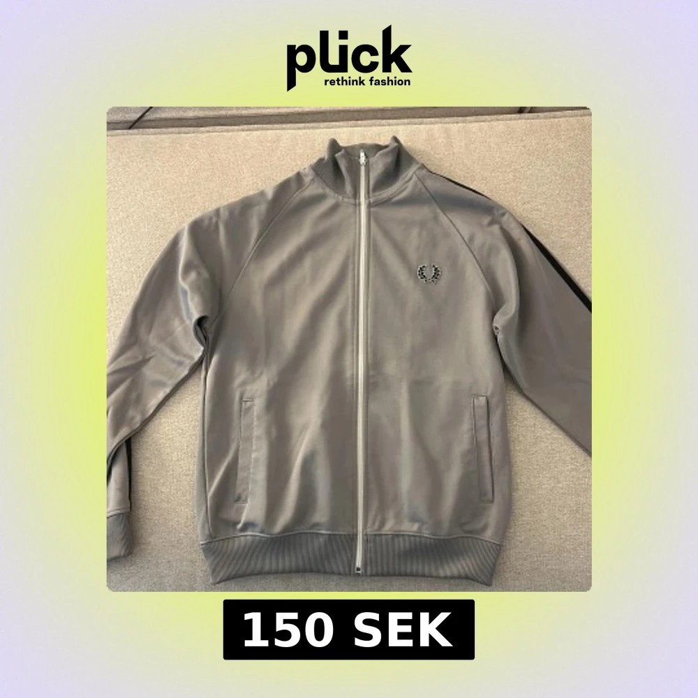 Snygg grå track jacket från Fred Perry med svart rand längs ärmarna och klassisk laurel-logga på bröstet. Jackan har hög krage, hel dragkedja och ribbade muddar. Perfekt för en sportig och stilren look.