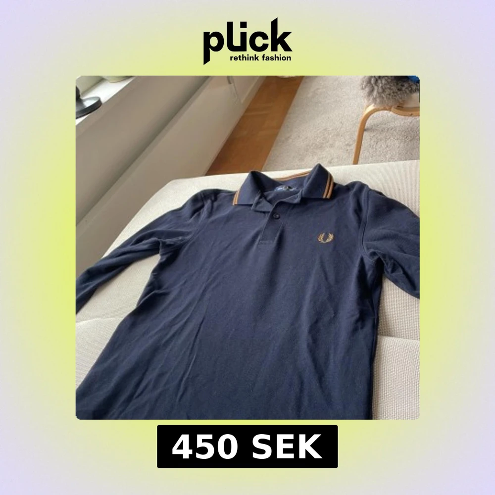 Mörkblå långärmad piké Fred Perry XS passar bra i S