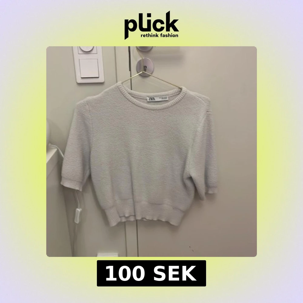 Säljer en stilren vit tröja från Zara. Tröjan har en enkel design med trekvartsärmar och ribbade kanter. Perfekt för en avslappnad look.