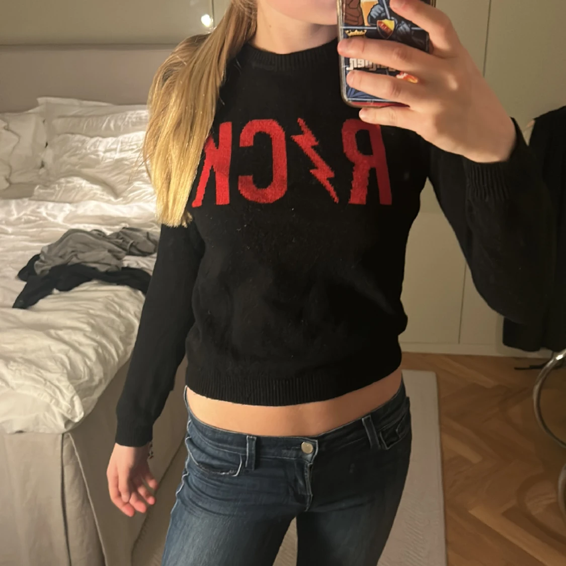Det är en svart Zadig tröja som det står rock på jätte fin aldrig använt köpte för 1000 ungefär ksk mer 🥰🥰🥰