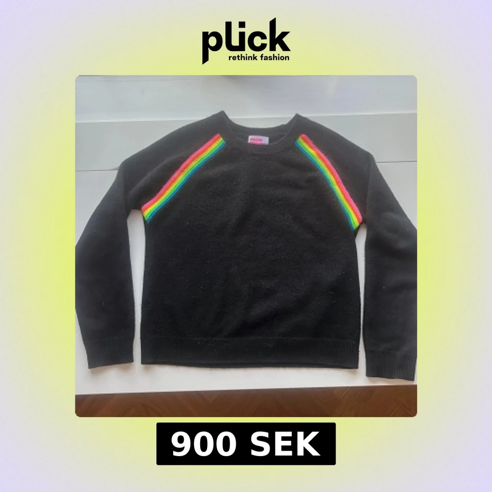 Säljer en svart tröja från From Future med färgglada regnbågsränder längs axlarna. Tröjan har långa ärmar och en rund halsringning. Frakt ingår inte i priset!