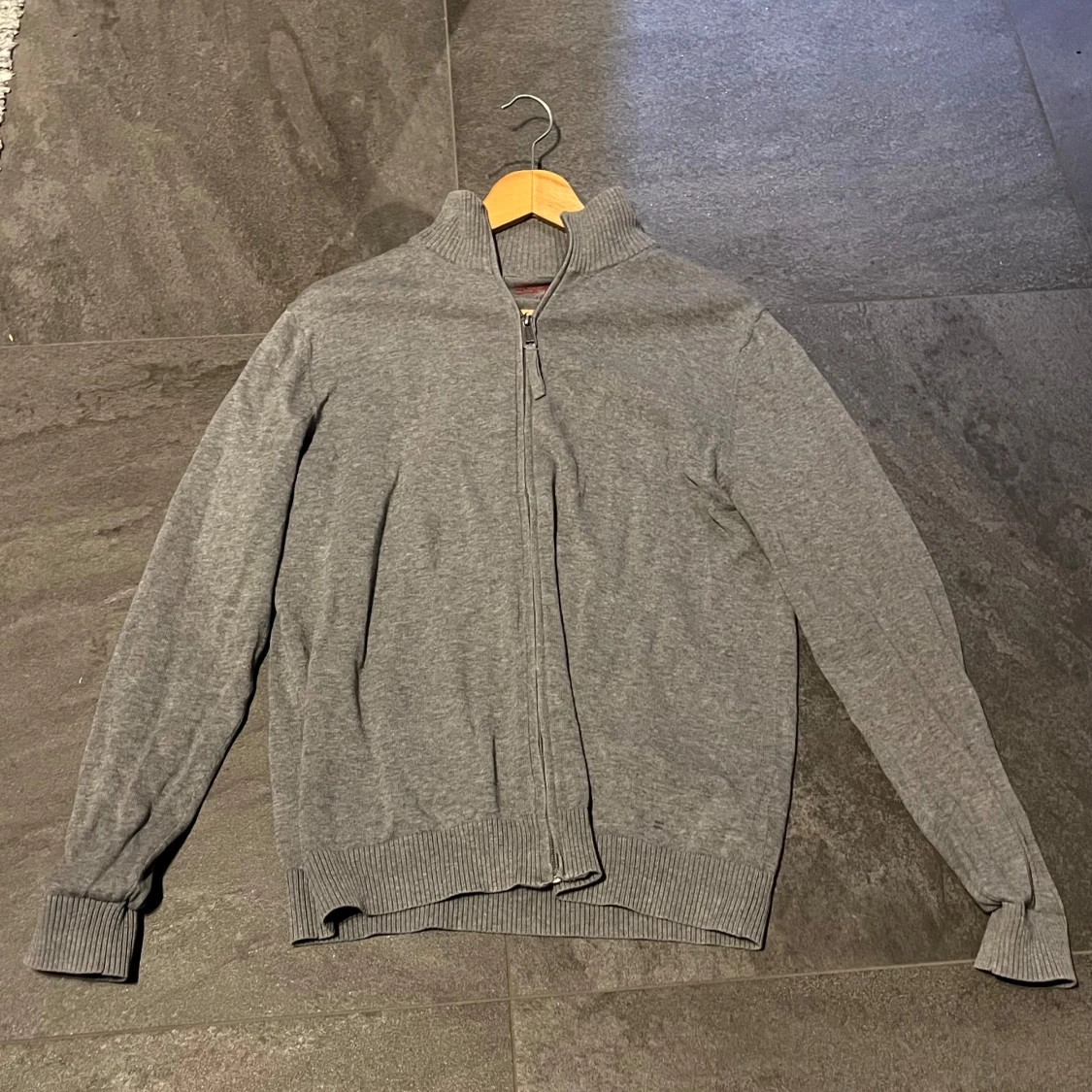 Säljer en stilren grå kofta från Esprit med ribbad krage och muddar. Koftan har hel dragkedja framtill och är tillverkad i mjuk bomullsmix. Perfekt för dig som gillar enkel och clean look. Passar dig som vill ha en normal passform och långärmad modell.