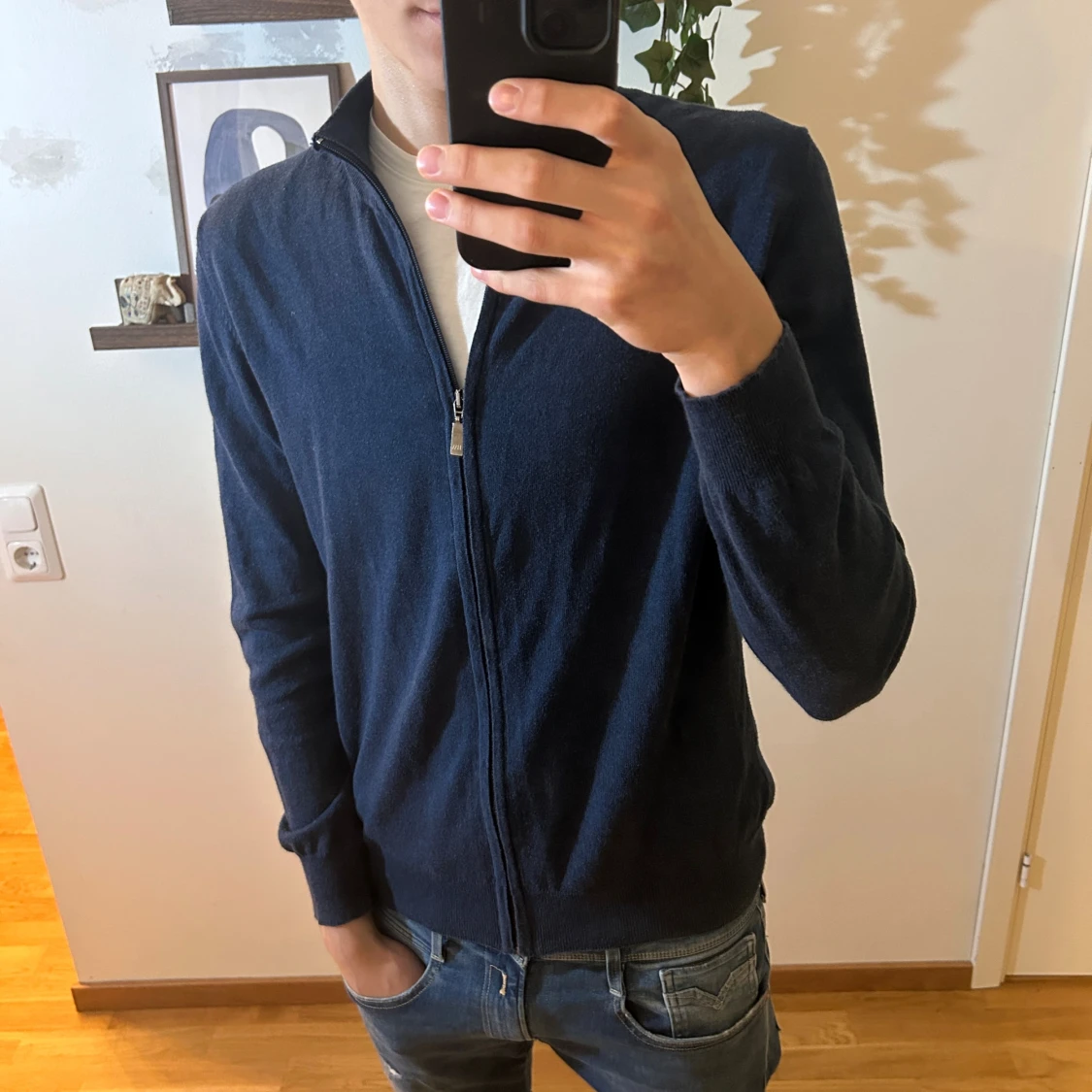 Tjekan säljer en as snygg mörkblå fullzip från Basics and More | Skick 9/10 jättebra | Mitt pris 399kr | Han på bilden är 188 cm lång! Kan även passa kortare | Hör av dig vid några funderingar eller frågor !