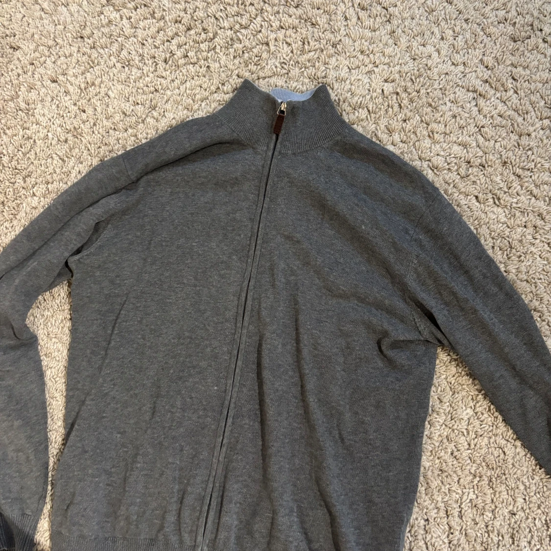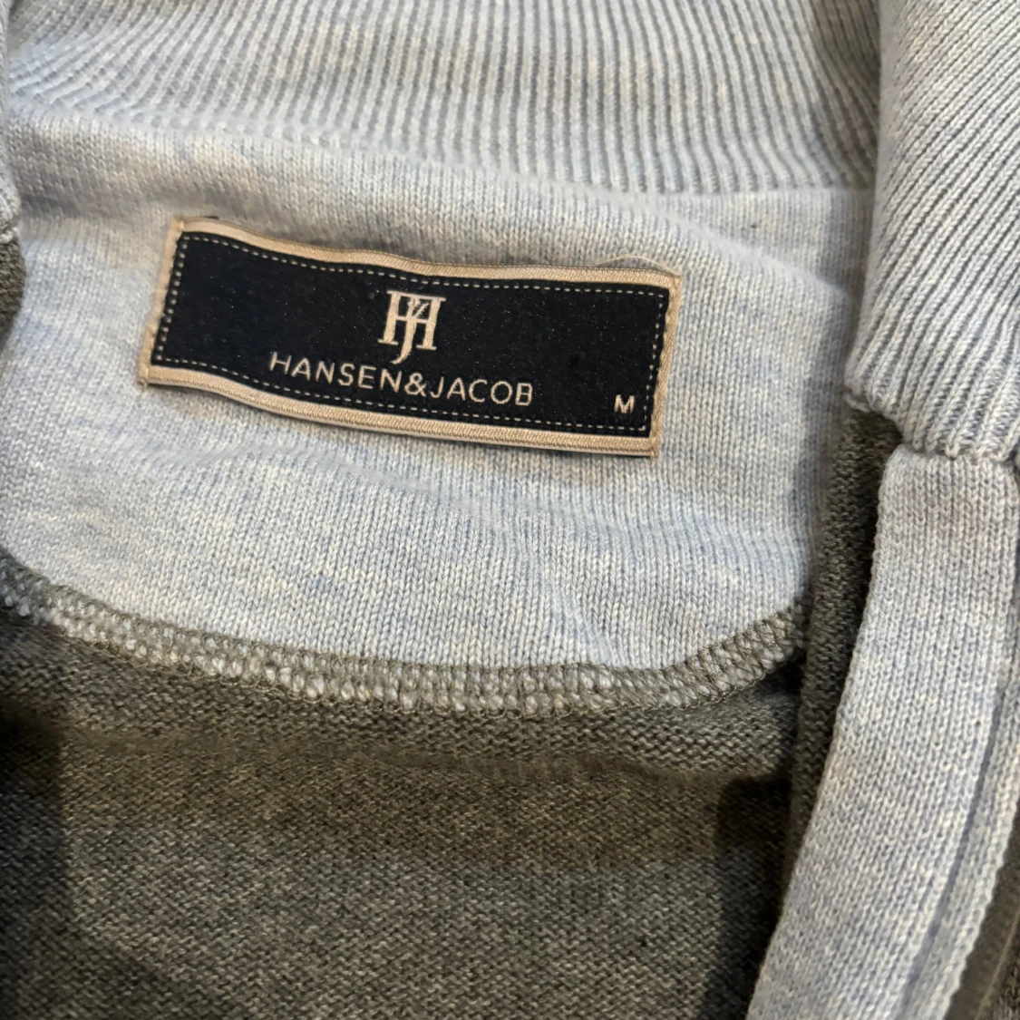 Säljer en stilren grå ziptröja från Hansen & Jacob. Tröjan har hög krage, hel dragkedja och ribbade muddar. Perfekt för lager-på-lager och enkel att matcha med det mesta. Mjuk och skön kvalitet.