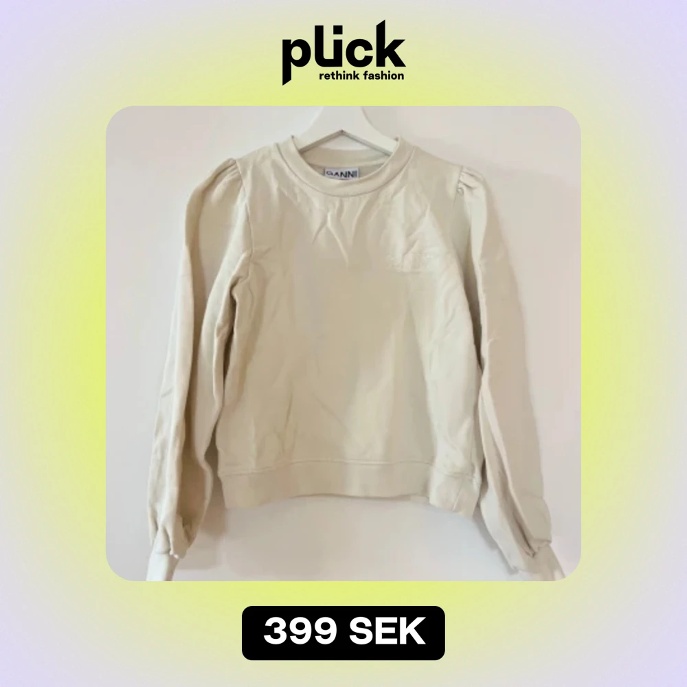 Creme-färgad sweater från Ganni med logo på bröstet och puffärm 🤍 Nypris: 1795, Mitt pris: 399 kr