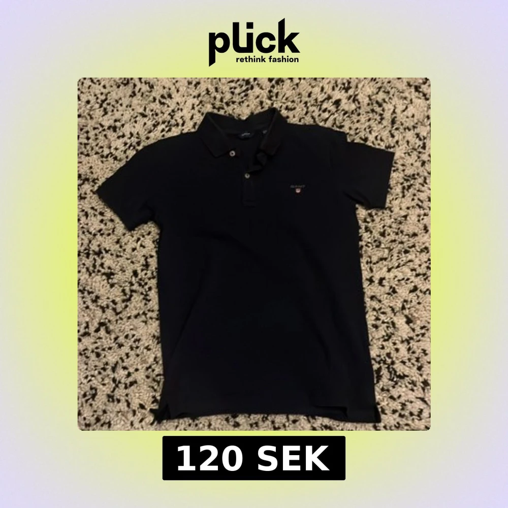 Klassisk svart pikétröja från GANT med broderad logga på bröstet. Tröjan har krage, korta ärmar och knäppning med två knappar framtill. Perfekt för en clean och stilren look. Den är lite stor i storlek så skulle säga att den skulle passa de som är 155-162