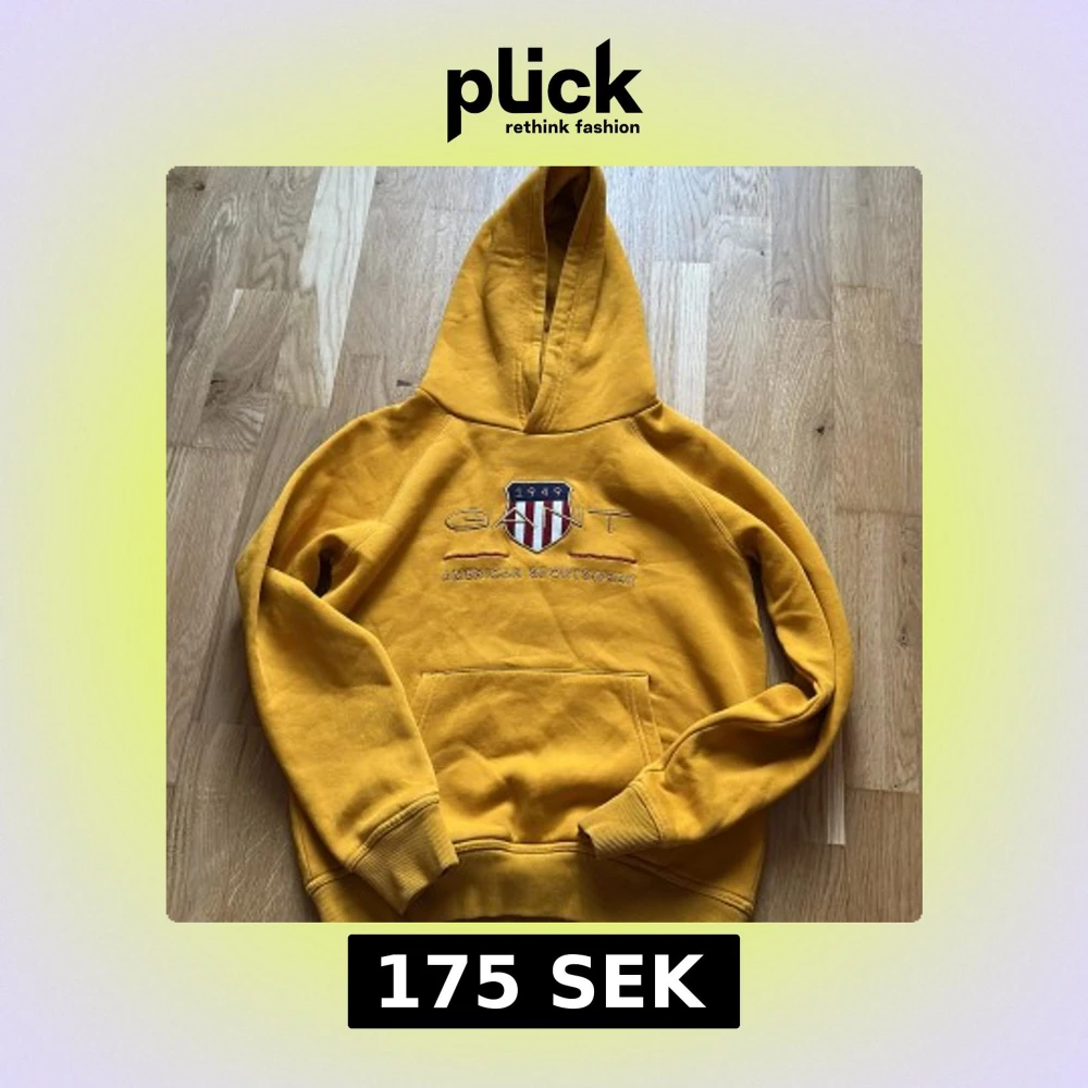 Gul hoodie från Gant med broderad logga och sköld på bröstet. Klassisk känguruficka framtill, ribbade muddar och huva. Mjuk och skön bomullskvalitet, perfekt för chill dagar eller när du vill sticka ut lite extra.
