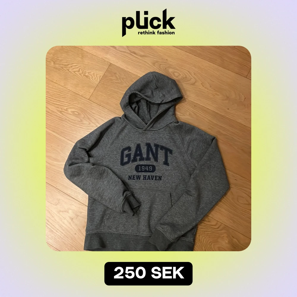 Säljer en snygg och bekväm grå hoodie från GANT med tryck '1949 New Haven' på bröstet. Perfekt för en avslappnad stil och passar bra till både jeans och joggers. Den har en klassisk passform med långa ärmar och en mysig huva. Perfekt för höst och vinter!
