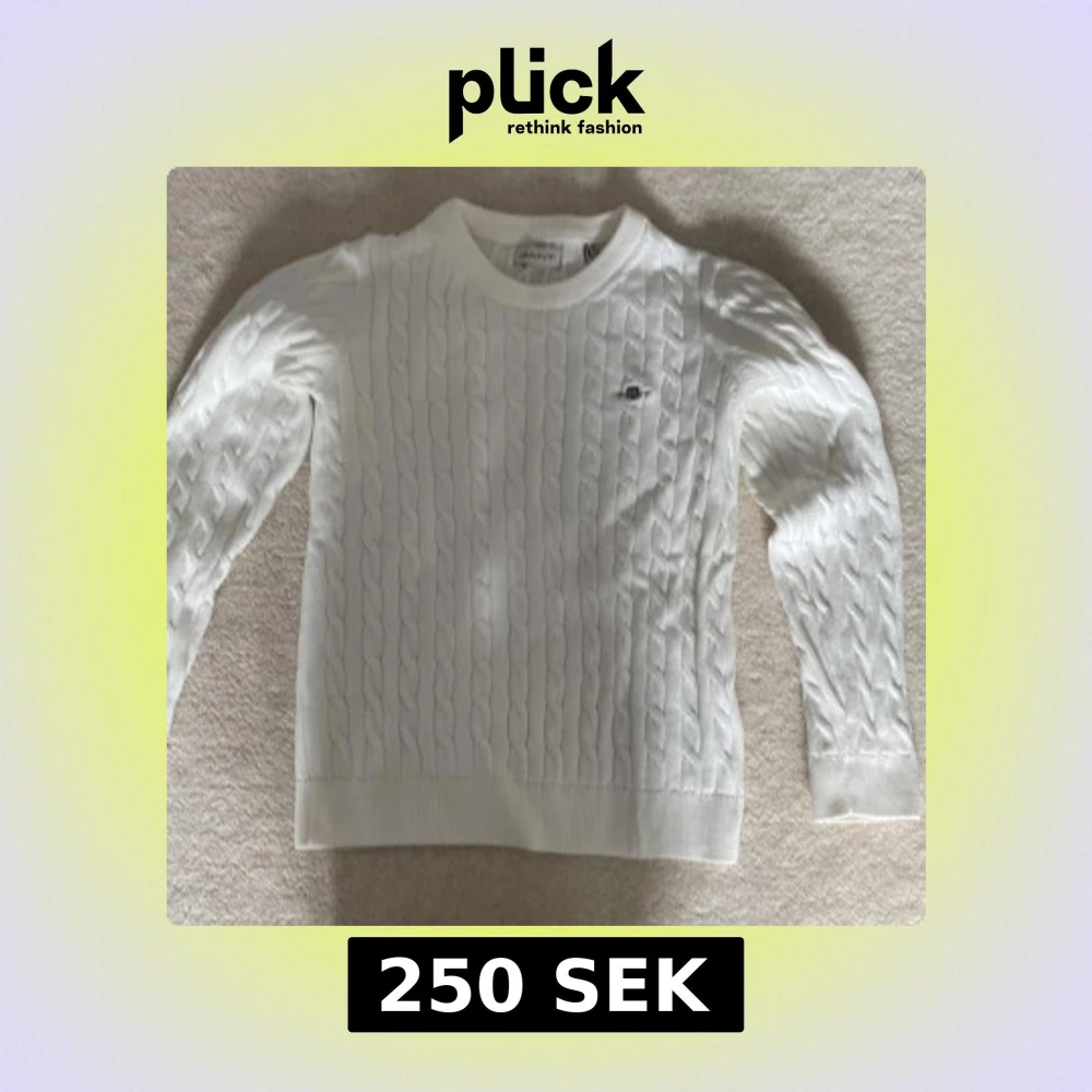 Säljer en stilren vit stickad tröja från GANT med klassiskt flätmönster. Tröjan har långa ärmar och en rund halsringning. Den är mjuk och bekväm, idealisk för både vardag och speciella tillfällen. Helt oanvänd.