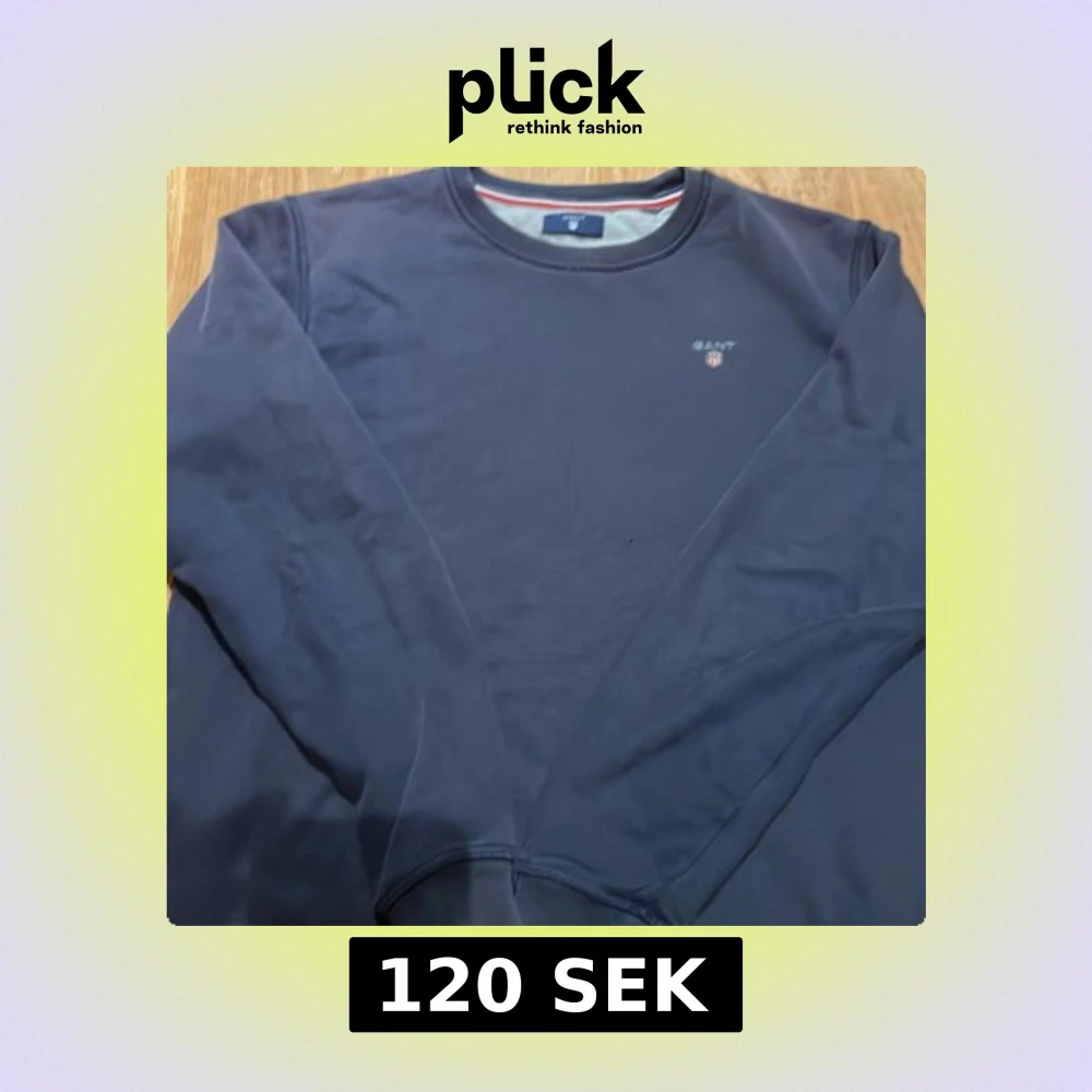 Säljer en stilren mörkblå sweatshirt från GANT med rund halsringning och diskret logga på bröstet. Tröjan har långa ärmar och klassisk passform, perfekt för en clean och avslappnad look. Tappat sin färg i tvätten men fortfarande väldigt bra återsittande passform. Pris går självklart att diskutera!