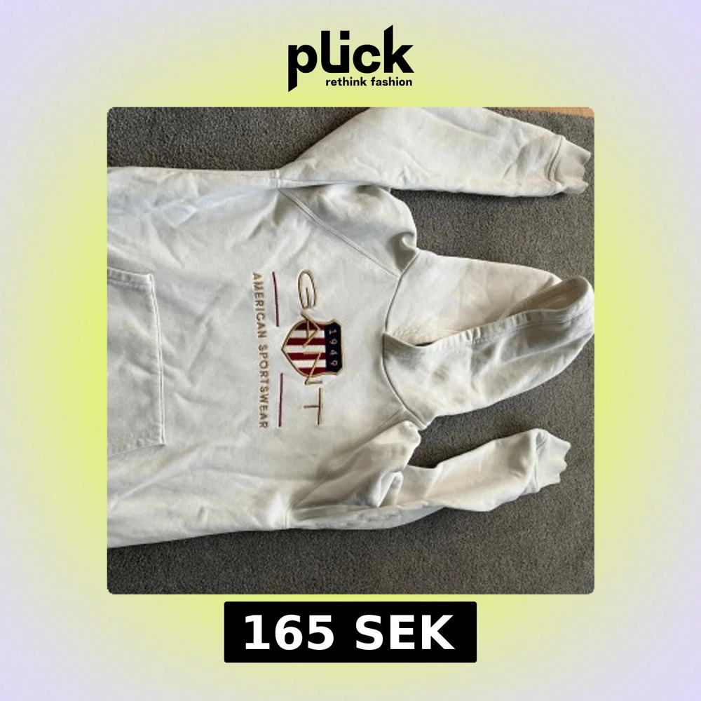 Vit hoodie från GANT med broderad logga och sköld på bröstet. Klassisk känguruficka framtill och huva. Mjuk insida och ribbade muddar vid ärmslut och nederkant. Perfekt för en chill och sportig look.