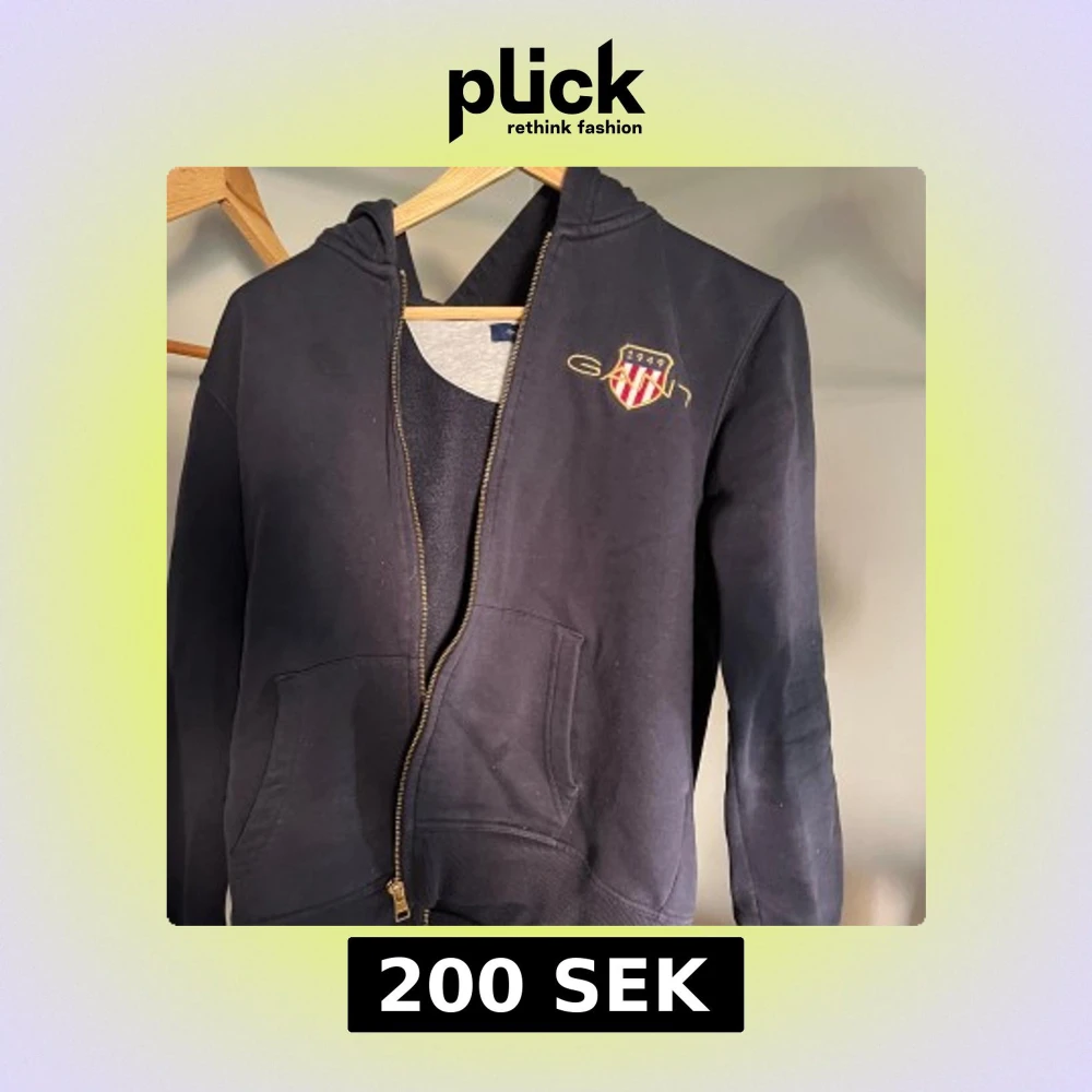 Svart hoodie från Gant med dragkedja
