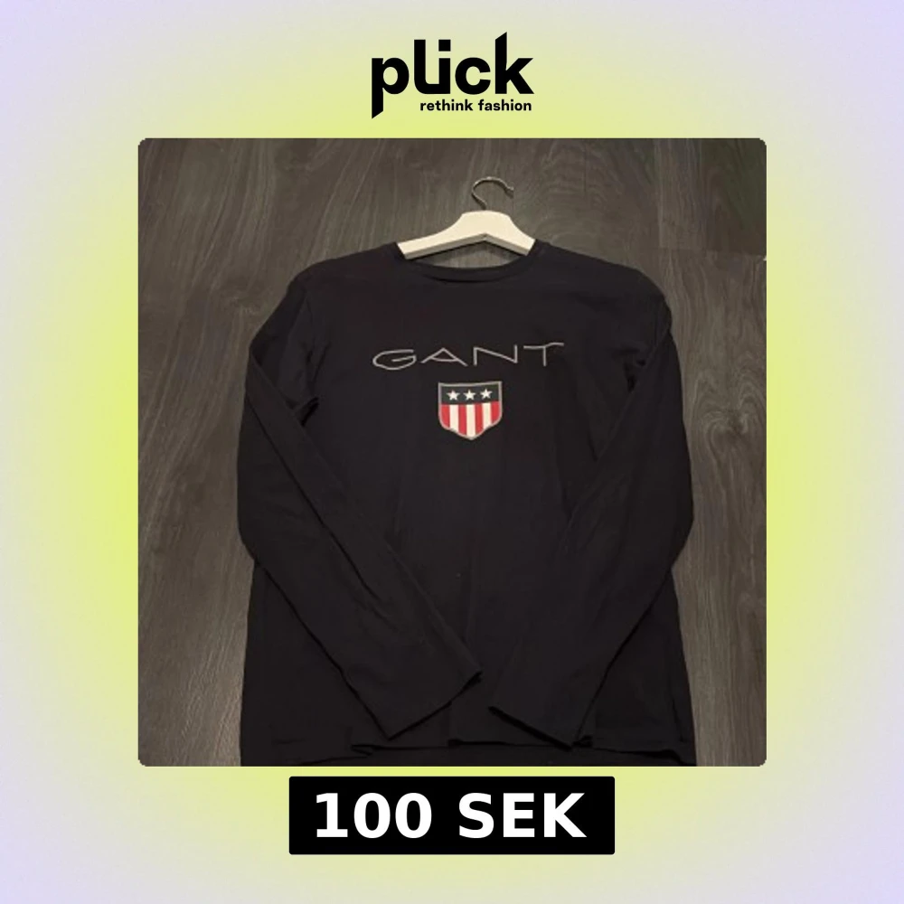 Säljer en svart långärmad tröja från GANT med tryckt logga och sköld på bröstet. Den är aldrig använd och väldigt mjuk i tyget, den är stor i storlek så skulle säga att de är en S.