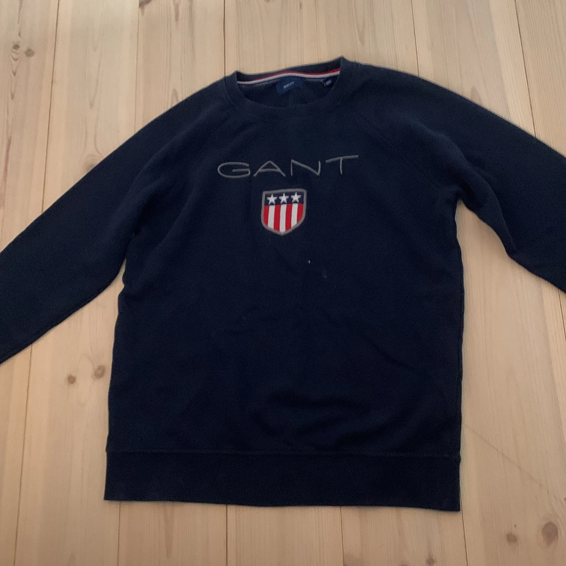 Säljer en mörkblå sweatshirt från GANT med broderad logga och sköld med stjärnor och ränder på bröstet. Tröjan har rund halsringning och långa ärmar. Klassisk och stilren modell som passar perfekt till vardags.Säöjer den eftersom den inte passar mig längre. Pris kan diskuteras