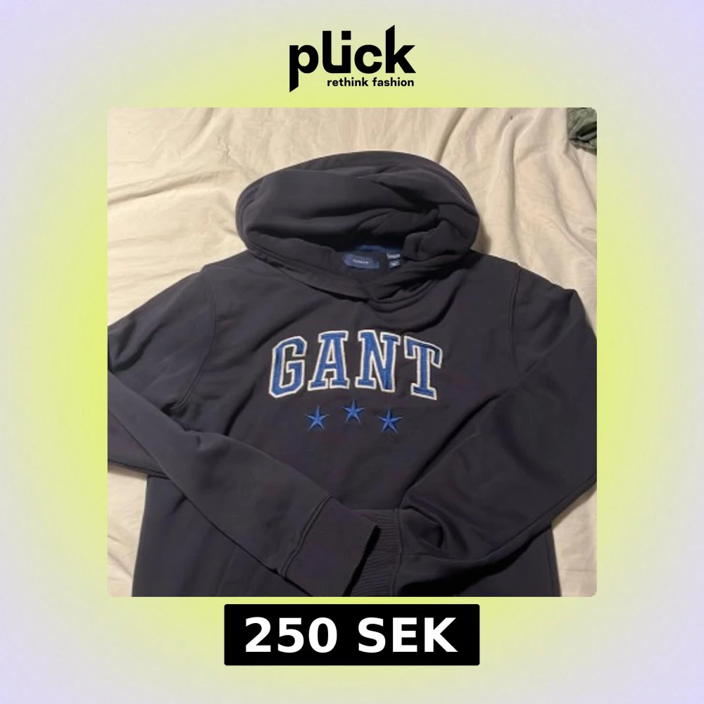Snygg mörkblå hoodie från GANT med stort broderat logotryck och tre blå stjärnor på bröstet. Tröjan har huva, långa ärmar och ribbade muddar. Perfekt för chill dagar och streetstyle. Materialet är mjukt och skönt, troligtvis bomull eller polyester.