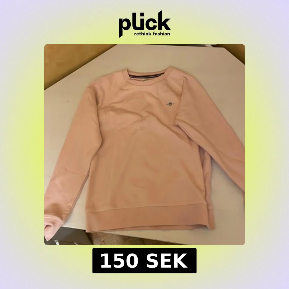 Säljer en ljusrosa sweatshirt från Gant med broderad logga på bröstet. Tröjan har rund halsringning och långa ärmar. Perfekt för en avslappnad och stilren look. Liten i storlek så mer som en 152 cm.
