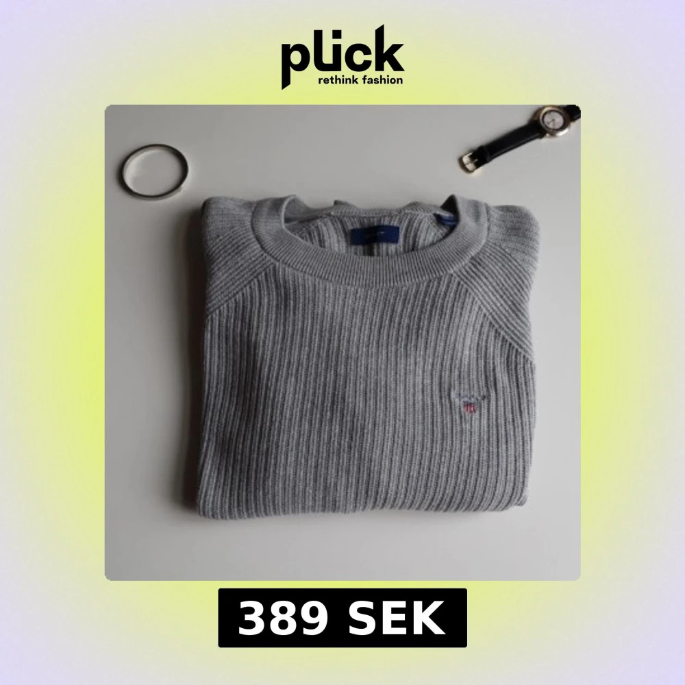 Säljer en grå stickad cardigan från Gant. Tröjan har en diskret broderad logga på bröstet och är tillverkad i ett mjukt och stretchigt material, original pris 1389 säljer för 389