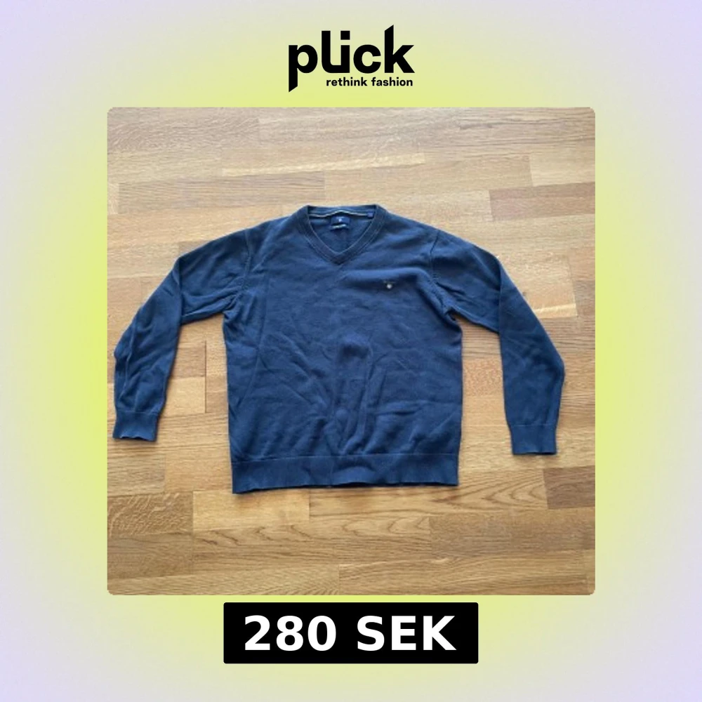Säljer en klassisk mörkblå v-ringad tröja från GANT i premium bomull. Tröjan har långa ärmar, ribbade muddar och en liten broderad logga på bröstet. Perfekt för en stilren och enkel look.