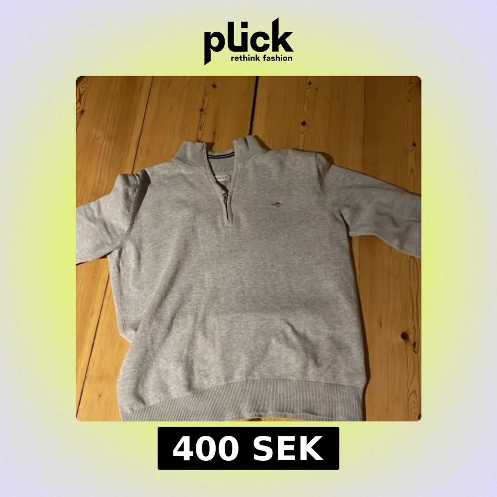 Säljer en stilren grå tröja från GANT med dragkedja och ribbade detaljer. Tröjan har en liten broderad logga på bröstet och en randig krage. Perfekt för en avslappnad stil. Storleken är 170 och passar 14-15 åringar. Priset är inte hugget i sten!