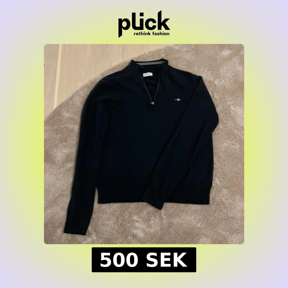 Snygg mörkblå långärmad tröja från GANT med half zip och ribbad krage med vita ränder. Tröjan har broderad logga på bröstet och är gjord i mjuk bomull. Perfekt för dig som gillar klassisk stil med en sportig touch. Sitter riktigt snygg på än och riktigt bra kofta om du vill se bra ut💯