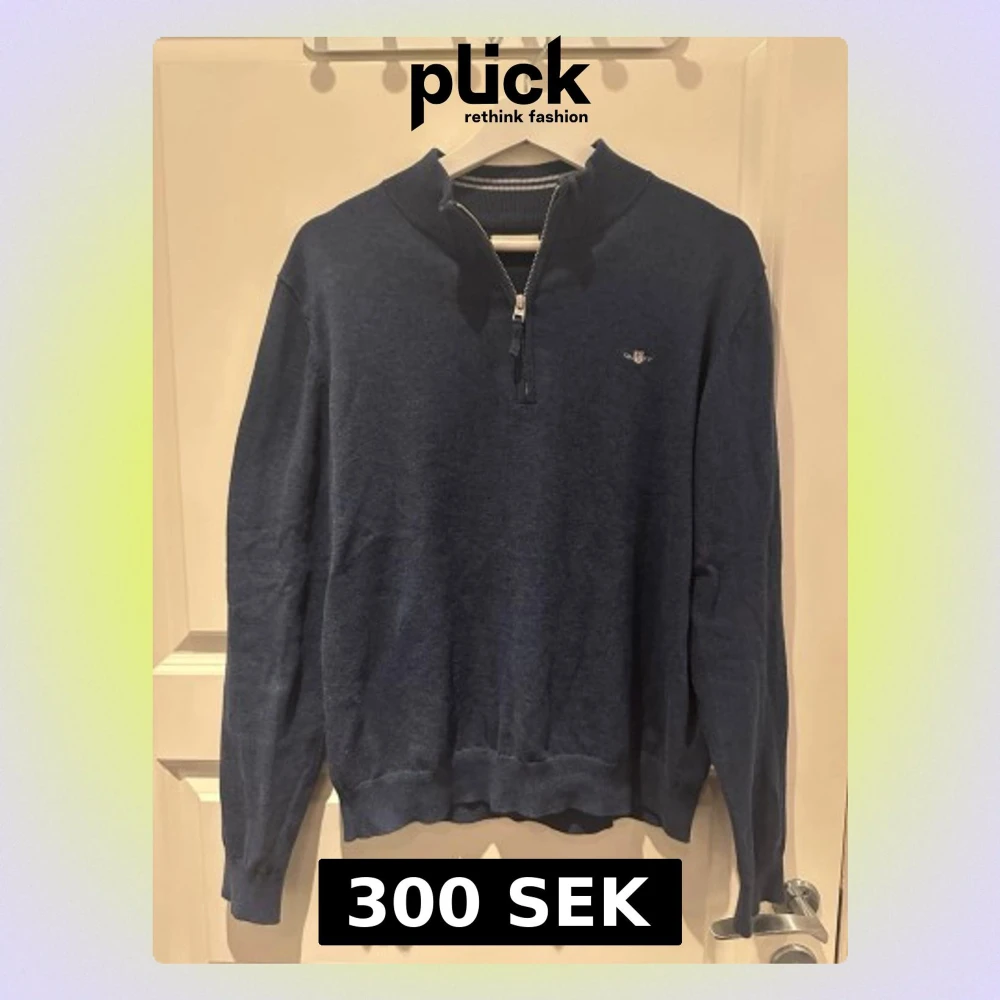 Snygg mörkblå tröja från GANT med half zip och liten broderad logga på bröstet. Tröjan har ribbad krage med vita ränder, långa ärmar och är gjord i mjuk bomull. Perfekt för dig som gillar klassisk stil med en sportig touch.