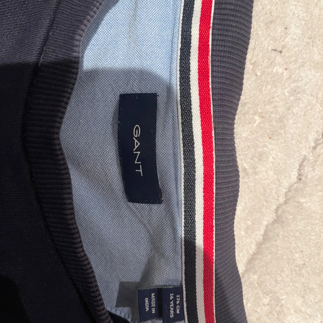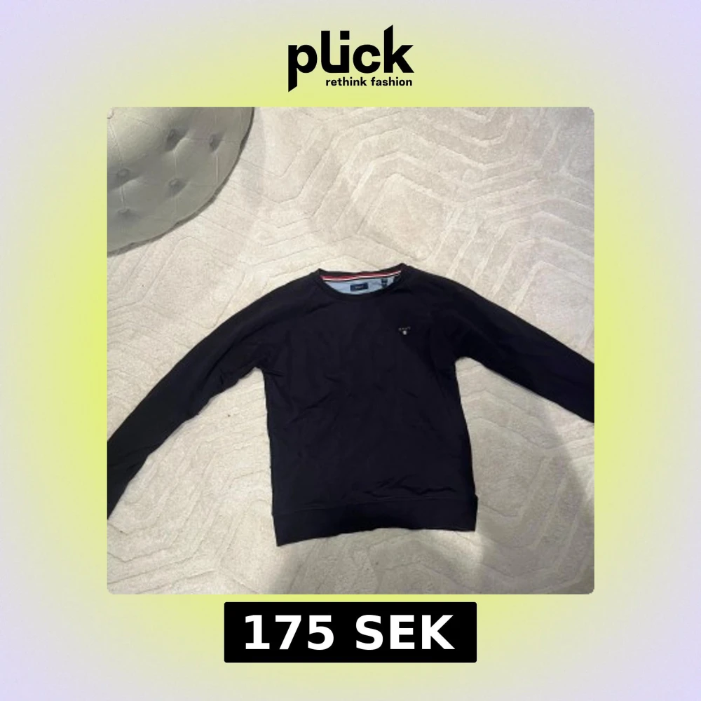 Säljer en stilren svart tröja från GANT med rund halsringning och diskret logga på bröstet. Tröjan har långa ärmar och ribbade muddar vid ärmslut och nederkant. Perfekt för en avslappnad look.