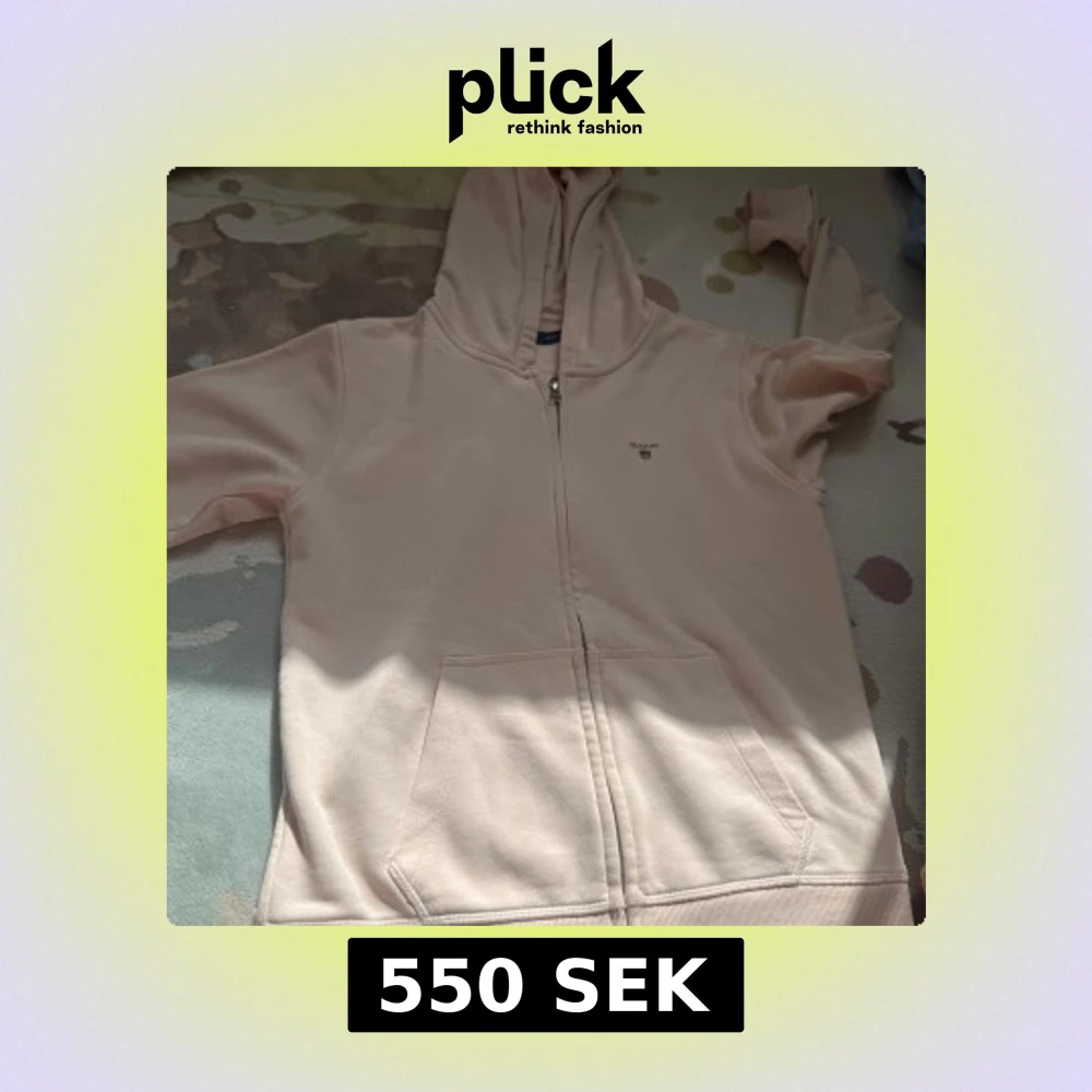 Säljer en ljusrosa hoodie från GANT med dragkedja framtill och huva. Tröjan har två stora fickor fram och diskret GANT-logga på bröstet. Tillverkad i mjuk bomull, perfekt för chill dagar. Klassisk och enkel design som funkar till det mesta.