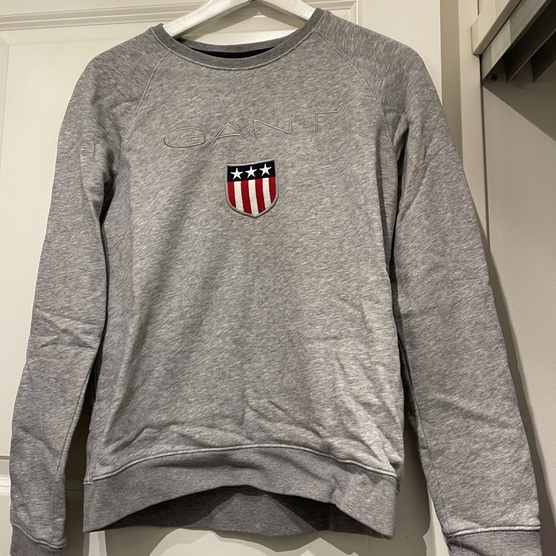 Säljer en ljusgrå collegetröja från GANT i storlek M, använd ett fåtal gånger men är i mycket fint skick. Kan tänkas mötas upp i Växjö annars står köparen för frakten☺️