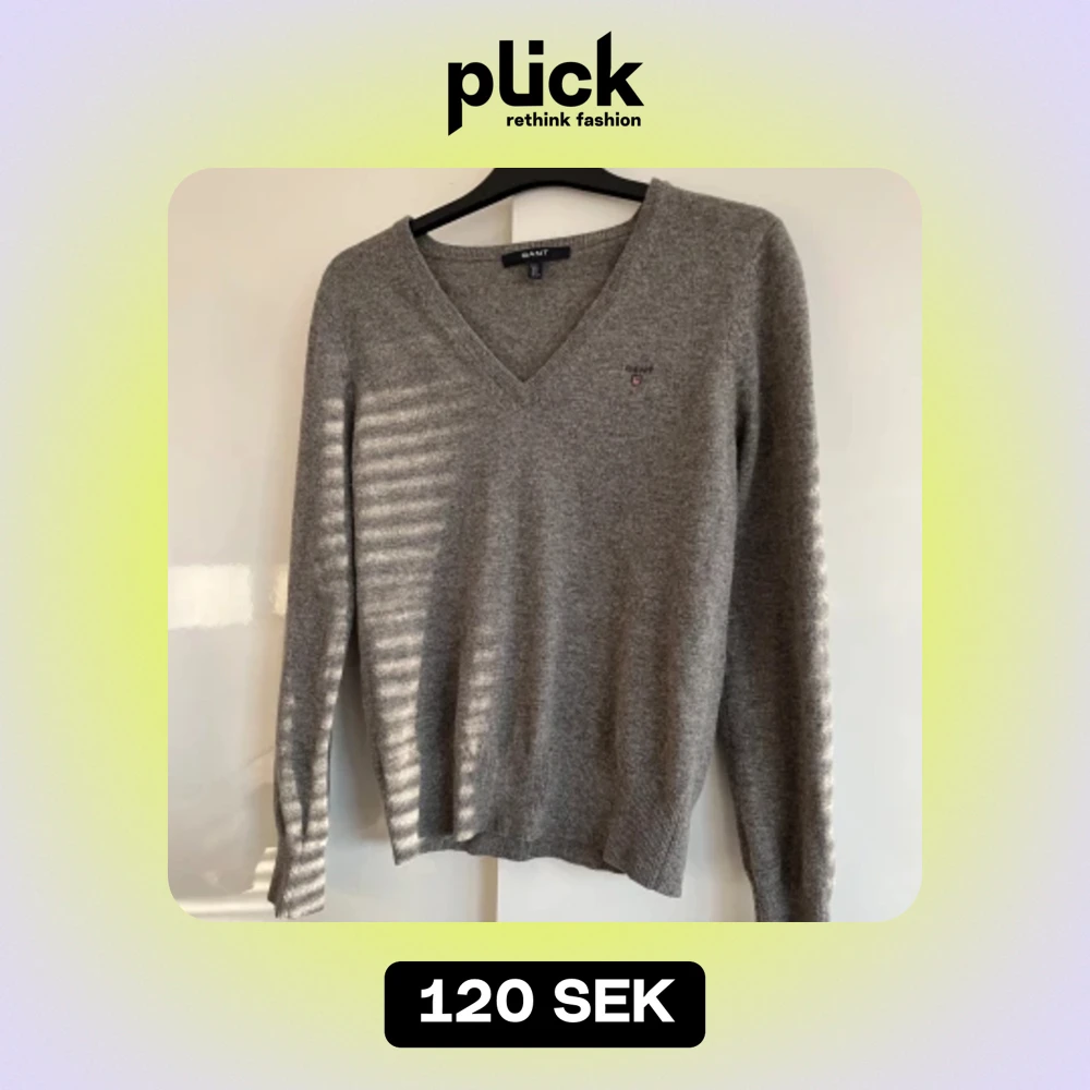 En grå stickad Gant tröja i lamull i strl L, men skulle mer säga att passformen är en M!💓