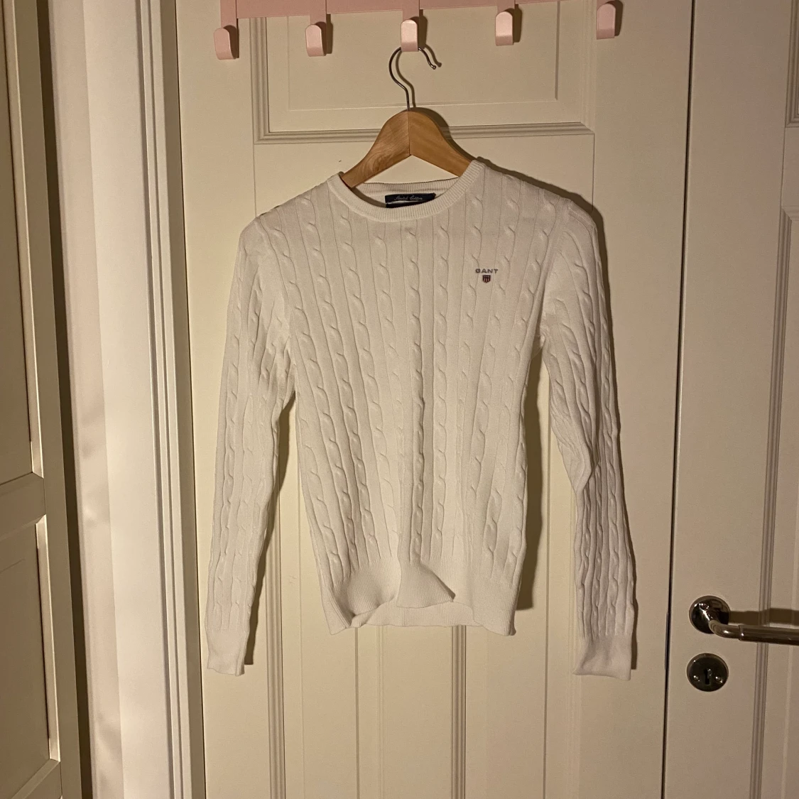 Säljer min fina vita ribbstickade gant tröja i storlek S då den inte kommer till användning längre! Originalpris lite över 1000kr men säljer för 290kr! Kontakta mig vit intresse, TRYCK EJ PÅ KÖP DIREKT!!!😊💕