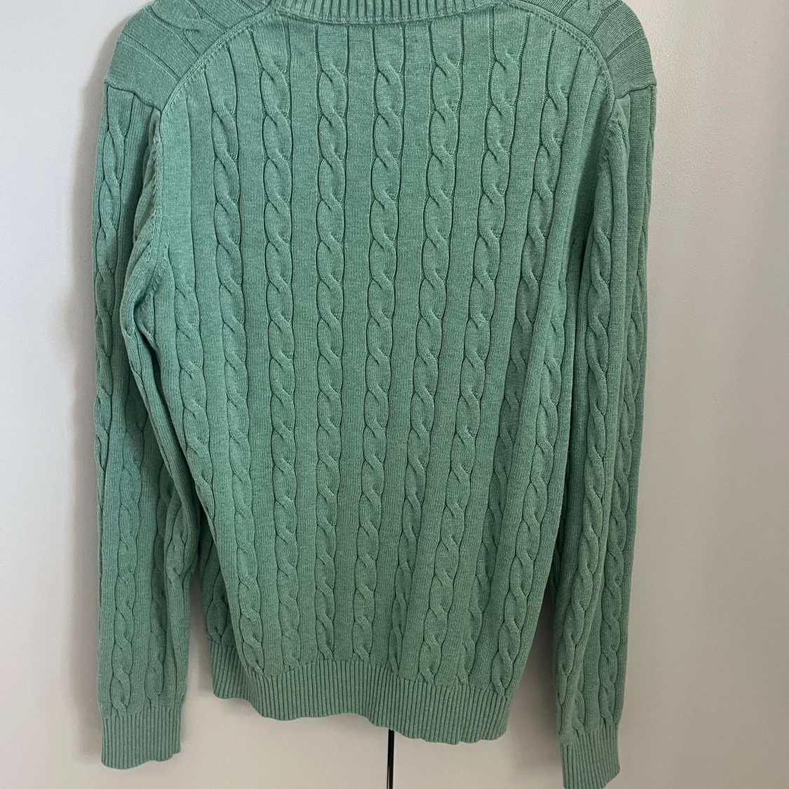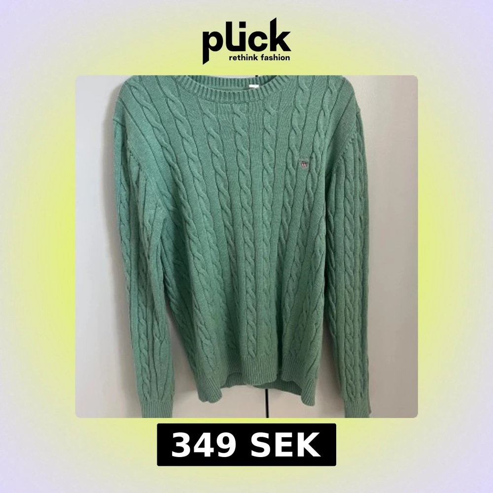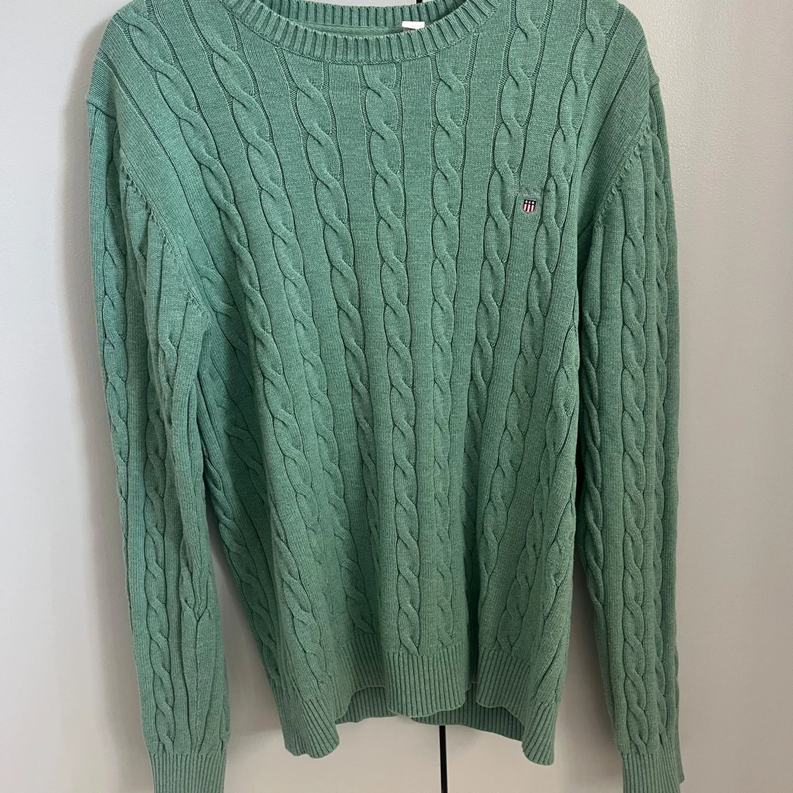 Snygg grön kabelstickad tröja från GANT med rund halsringning och diskret logga på bröstet. I strl M