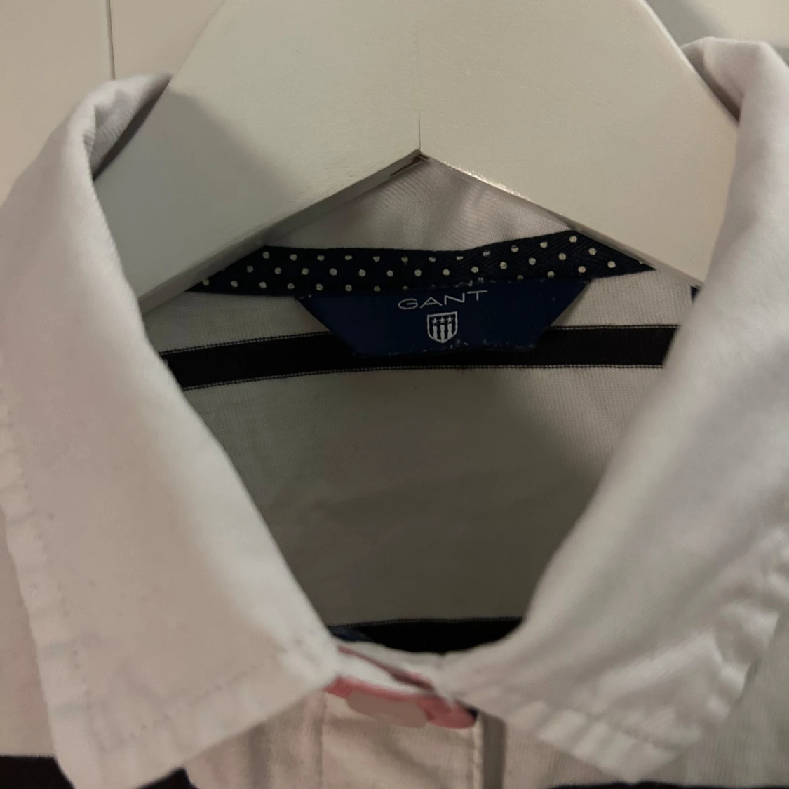 Denna stiliga piké är använd ett fåtal gånger och i mycket bra skick. Den är vit med svarta ränder. Den är liten i storleken men passar en XS. Passa på!