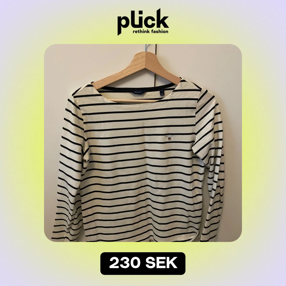 Säljer en klassisk randig tröja från GANT i storlek S. Den är vit med svarta ränder. Tröjan är använd men i mycket bra skick.