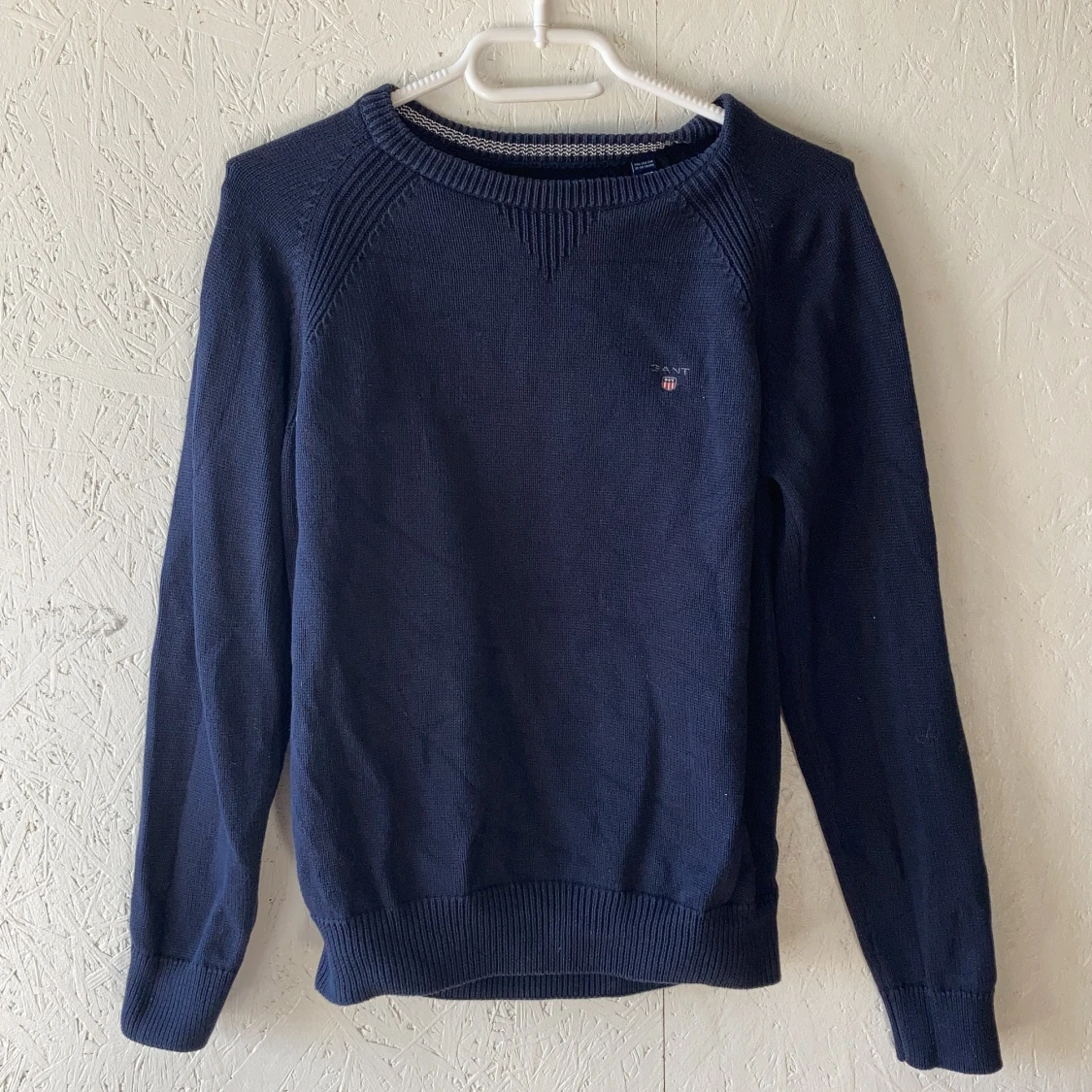 En stickad långärmad gant tröja i mörkblått. Storlek 146-152 cm/11-12 år. Sällan använd och är i fint skick! Kan mötas upp eller skicka med post. Köparen står även för frakten för frakten❤️