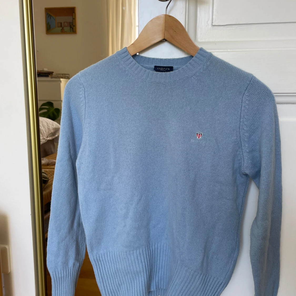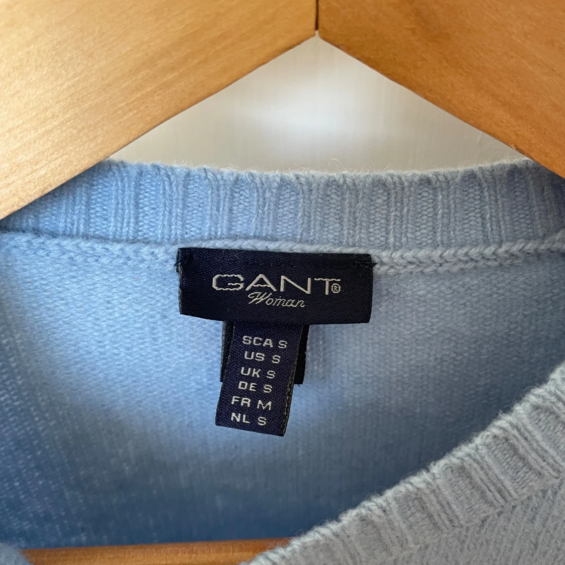 Superfin ljusblå stickad tröja från GANT, storlek S.