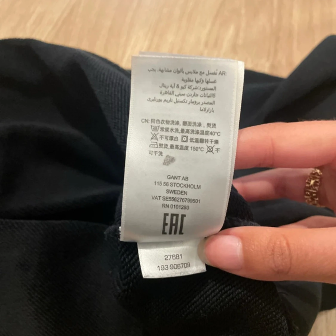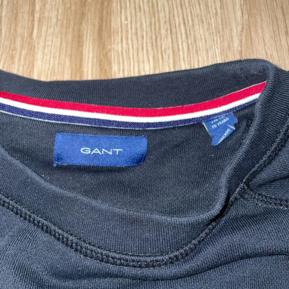 En super fin svart långärmad gant tröja med en gant loggo på överdelen i grå text. Storleksmässigt är den i 170 cm enligt tröjan. Passar alla (unisex). Den är lite stor så den passar alla från xs-m.