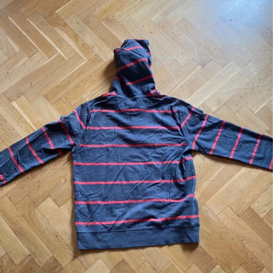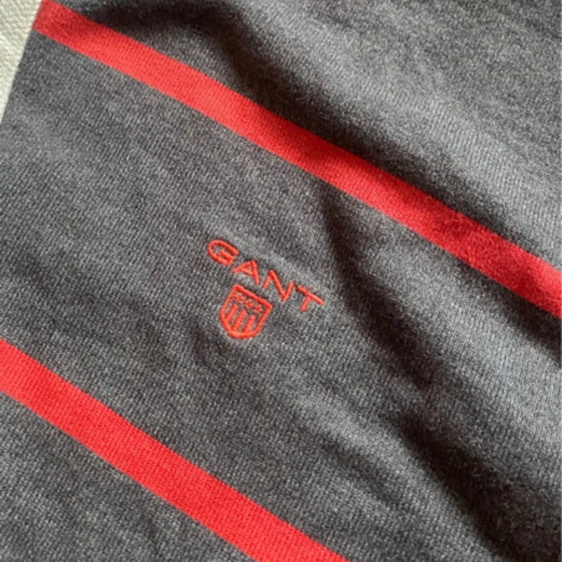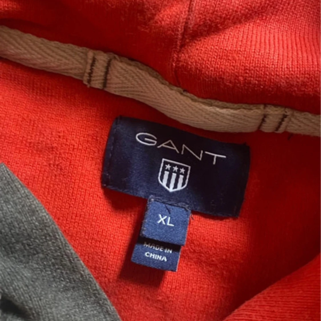 Säljer en snygg grå hoodie från Gant med röda ränder och justerbar huva. Perfekt för en avslappnad stil. Den har långa ärmar och en klassisk passform.