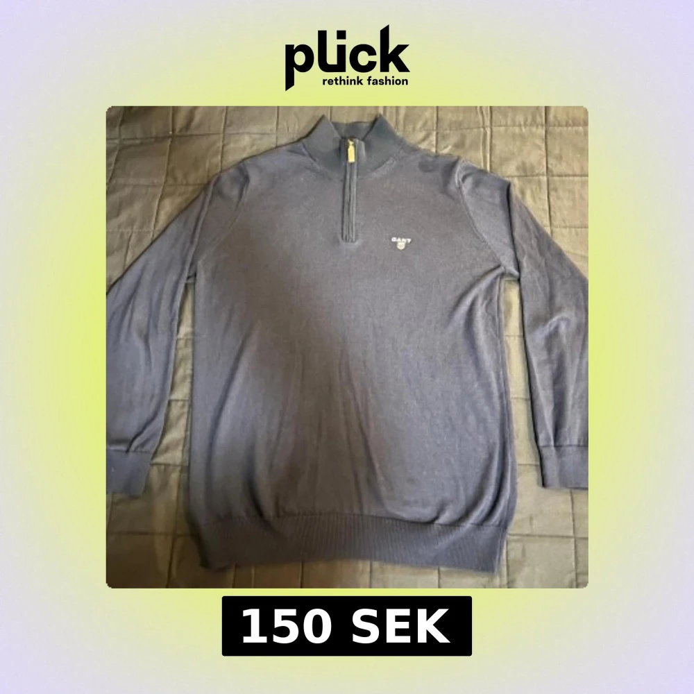 Mörkblå långärmad tröja från Gant med half zip och liten logga på bröstet. Tröjan är i mycket gott skick!