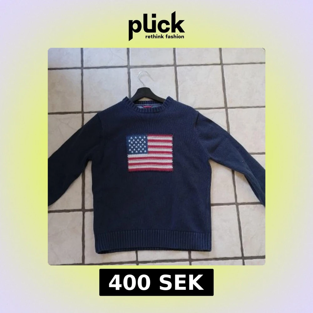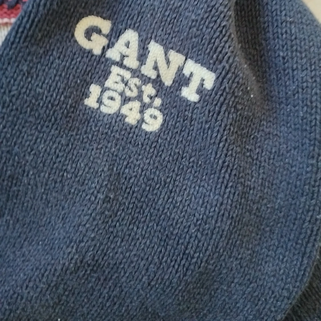 Mörkblå stickad tröja från GANT med amerikansk flagga