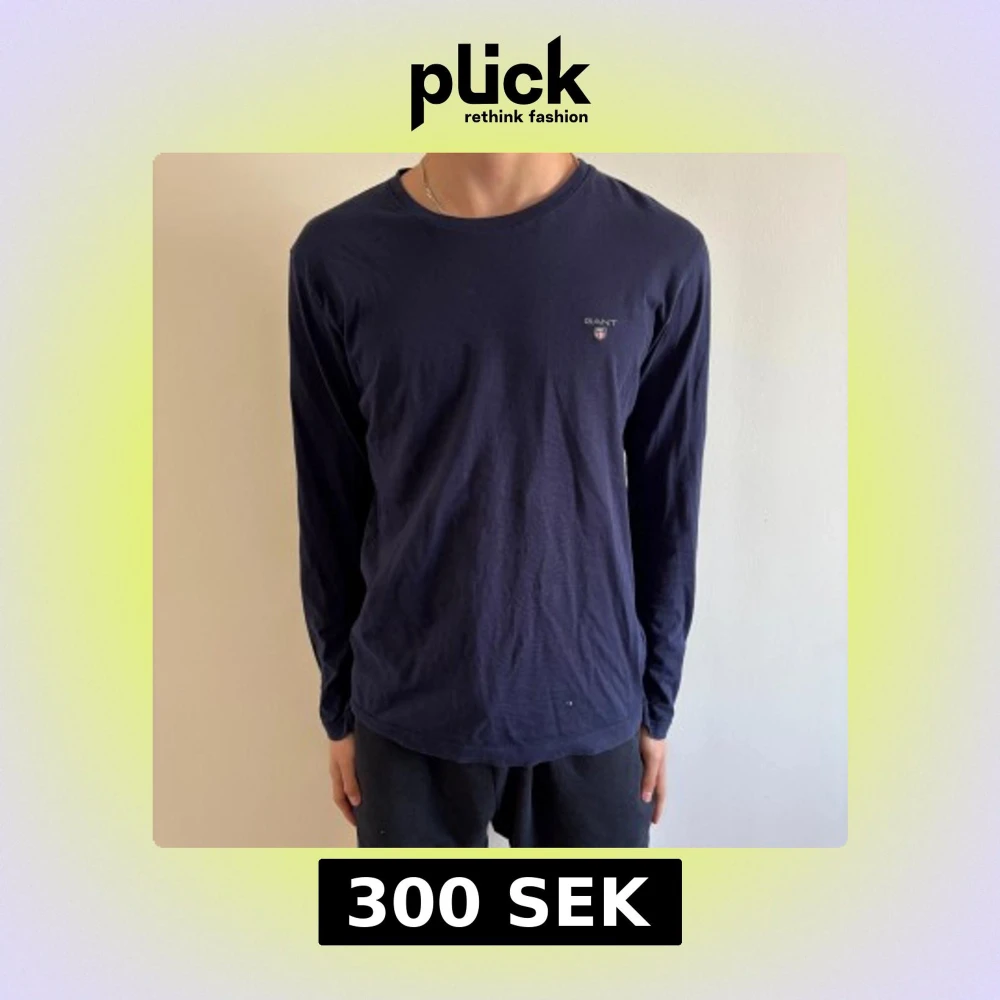 Säljer en stilren mörkblå långärmad tröja från GANT i bomull. Tröjan har rund halsringning och en liten broderad GANT-logga på bröstet. Passar perfekt till vardags för en enkel och klassisk look. Skriv kring mer information😀