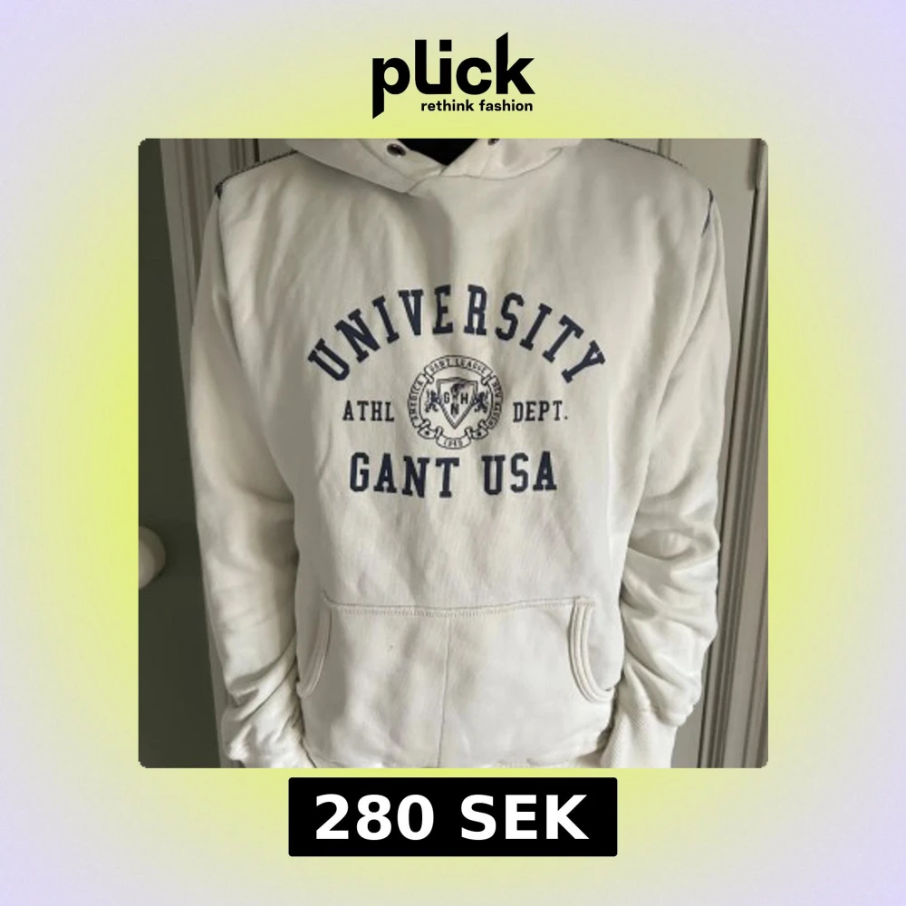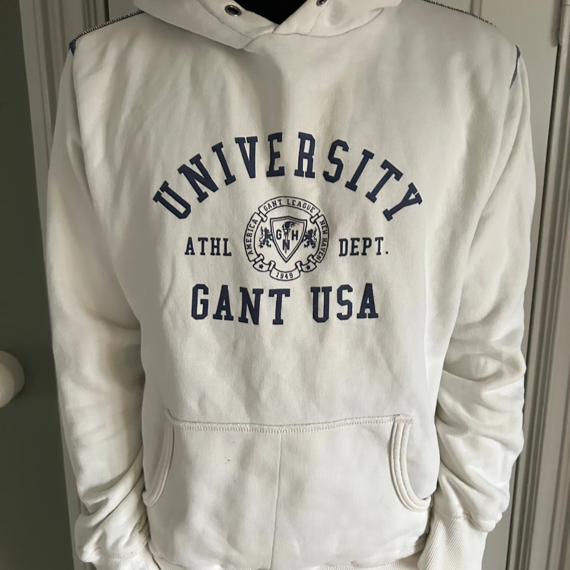 Säljer en vit hoodie från Gant med blå text. Jag skulle rekommendera varan till längden 180-190. Tveka inte på att kontakta mig vid minsta fundering!🙌