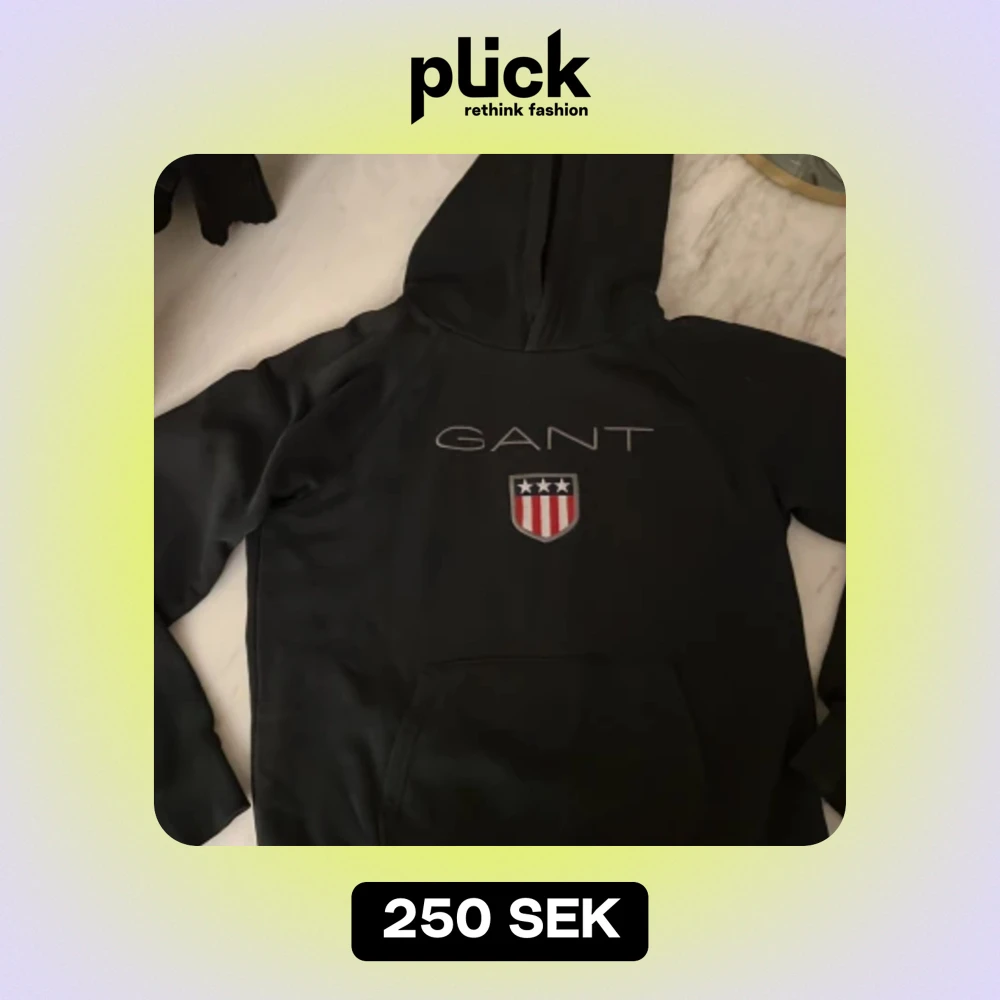 Svart Gant hoodie. Liten skada på ärmen. (Baksidan, se bild tre). Storlek 170, 15 år