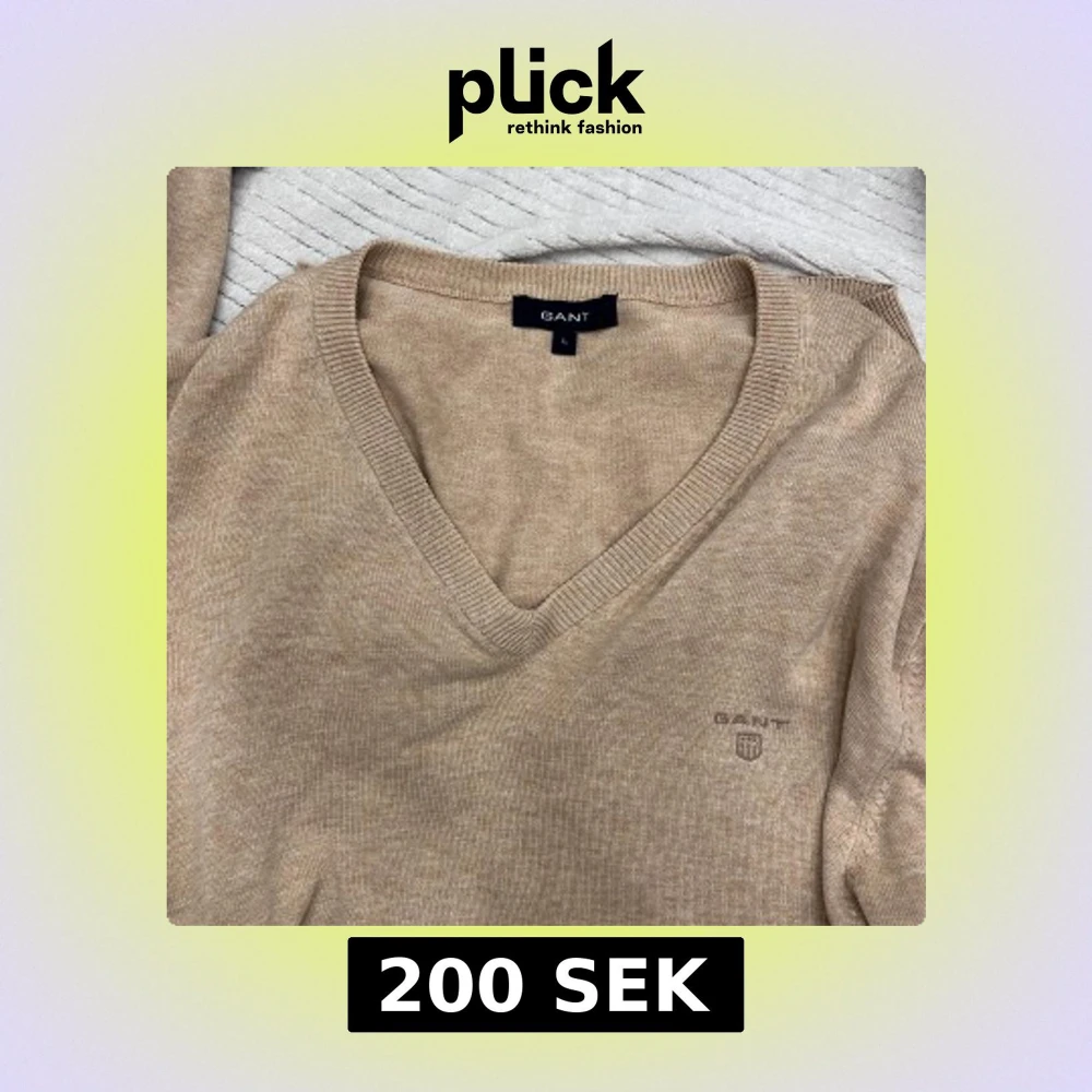 Snygg beige tröja från GANT med v-ringning. Perfekt för en stilren look. Tröjan har en diskret logga på bröstet och är tillverkad i ett mjukt material.