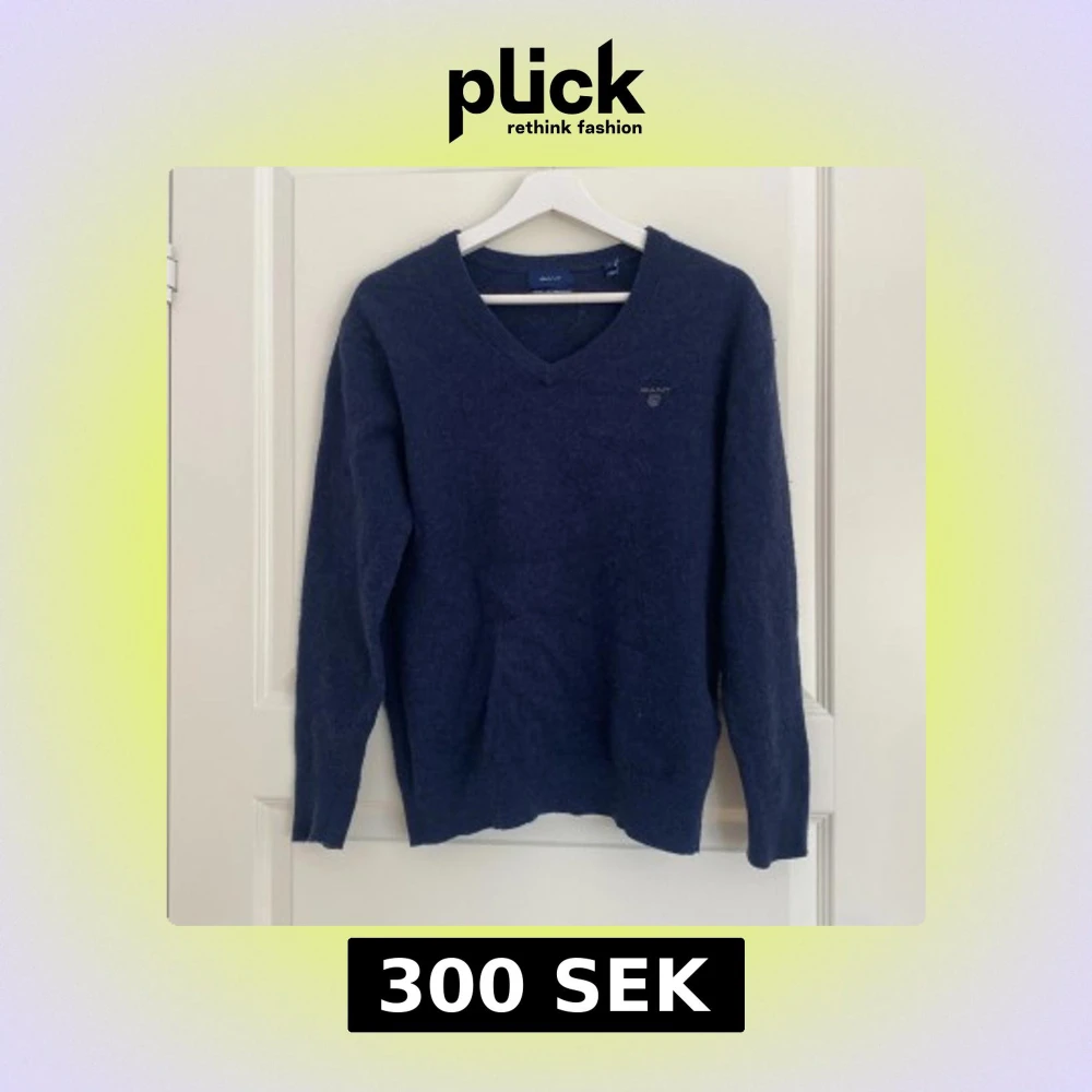 Klassisk mörkblå stickad tröja från GANT i extra fin lammull. Tröjan har v-ringad hals, långa ärmar och diskret broderad logga på bröstet. Perfekt för lager-på-lager och snygg till både jeans och chinos.