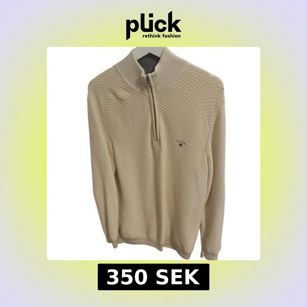 Snygg beige tröja från Gant med strukturerat mönster och hög krage. Tröjan har half zip-dragkedja och diskret logga på bröstet. Perfekt för lager-på-lager och passar till både jeans och chinos.